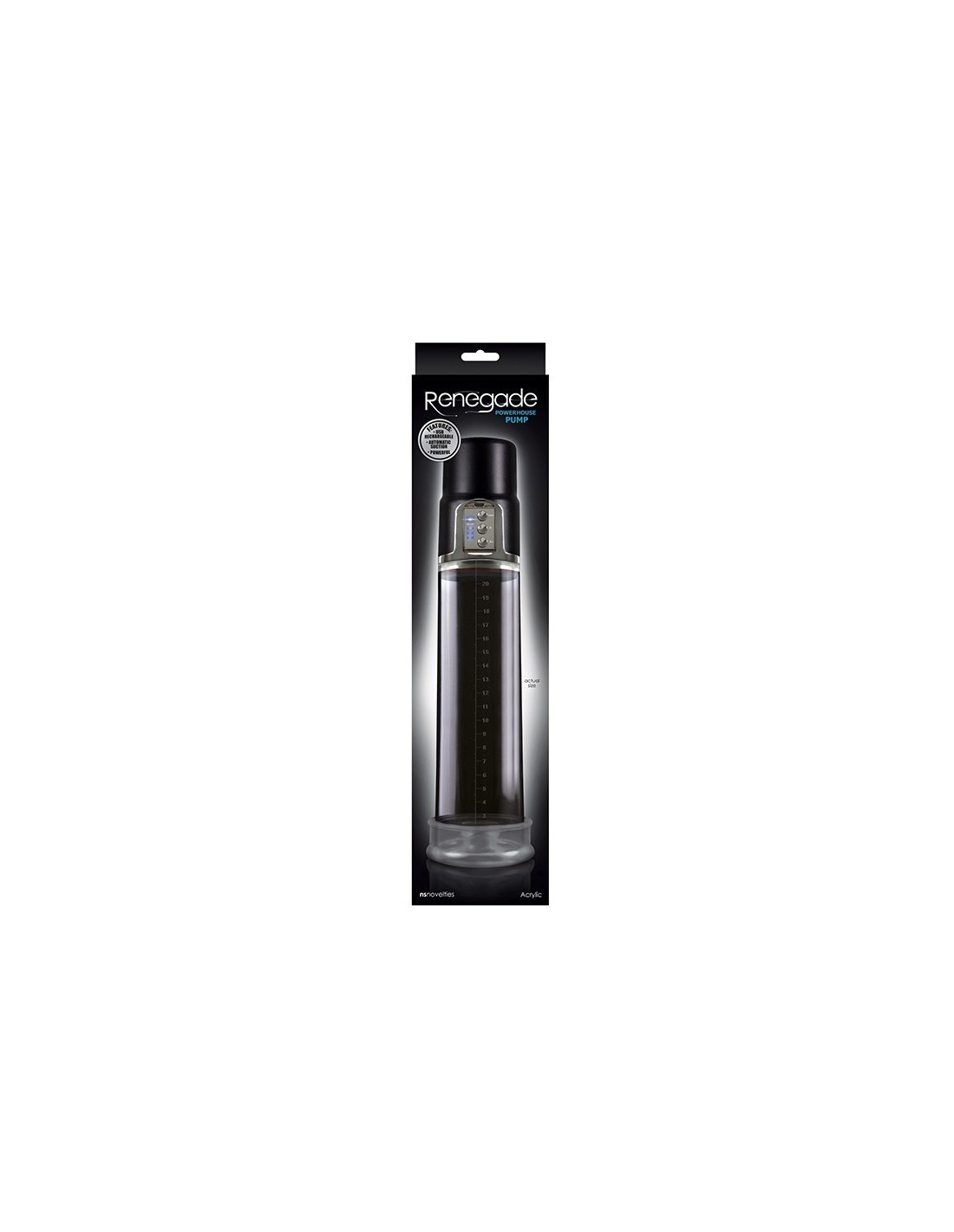 Renegade Powerhouse Pump delivers the ultimate in powerful suction. Featuring a robust yet quiet motor that delivers performance enhancing benefits with effortless ease. Being USB Rechargeable means you’re never without the power you need. Made of industrial grade acrylic and featuring a supple TPE donut, this pump will make all the others in your collection obsolete.