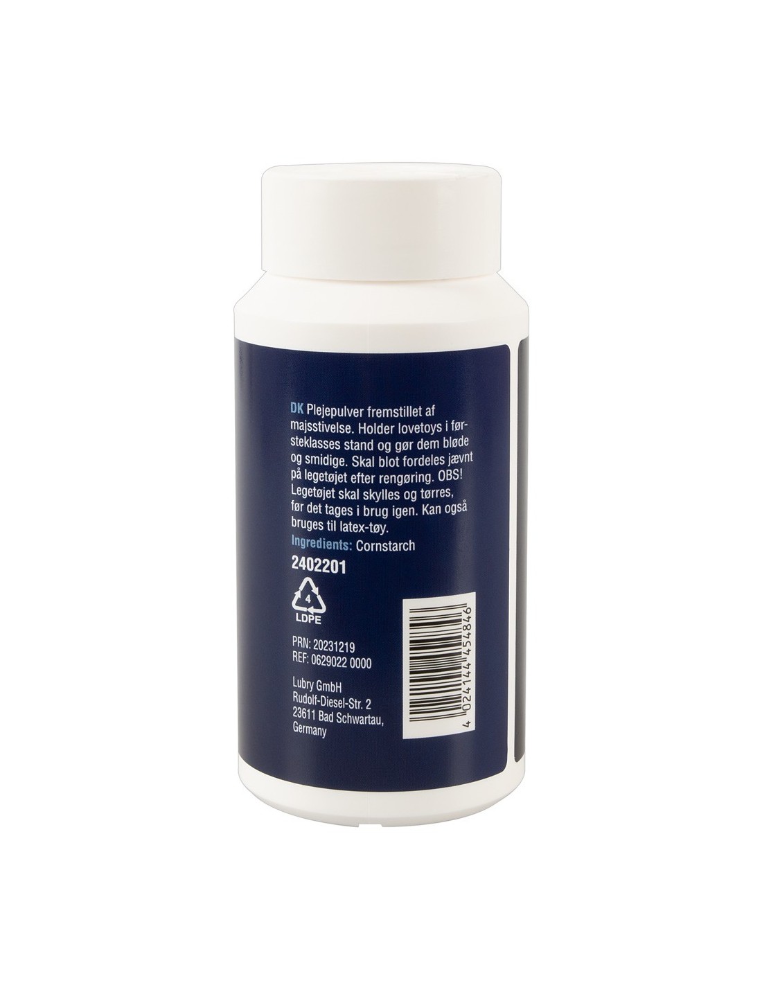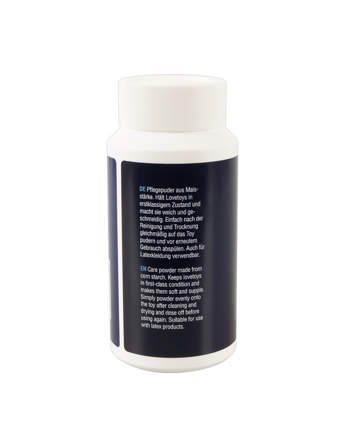 La polvere per giocattoli d'amore mantiene i giocattoli d'amore in condizioni ottimali e li rende morbidi ed elastici. Basta spolverare uniformemente il giocattolo dopo averlo pulito e asciugato. Può essere utilizzata anche per gli articoli in lattice. Chiudere bene il pratico shaker dopo l'uso in modo che la polvere di farina di mais non assorba l'umidità.
