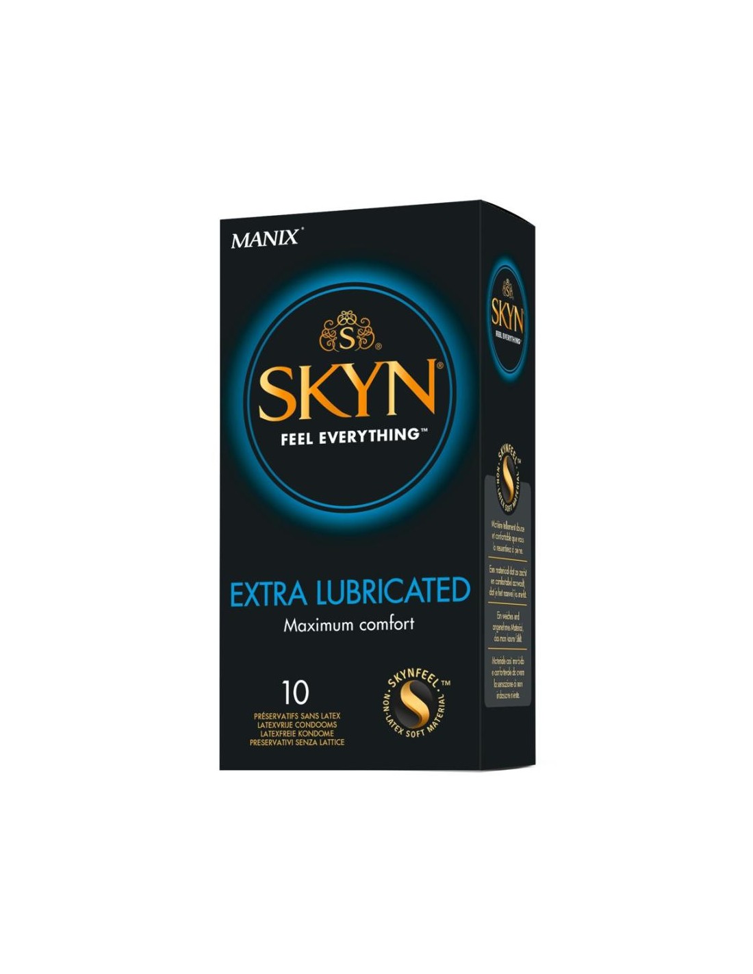 Preservativo vegano trasparente e ultrasottile Manix Skyn Extra Lubricated - rivestimento extra umido a base di silicone. Il materiale poliisoprenico dei preservativi si chiama Skynfeel ed è più morbido ed elastico del lattice, ma altrettanto stabile e senza il classico odore di lattice. È quindi ideale per le persone allergiche al lattice.