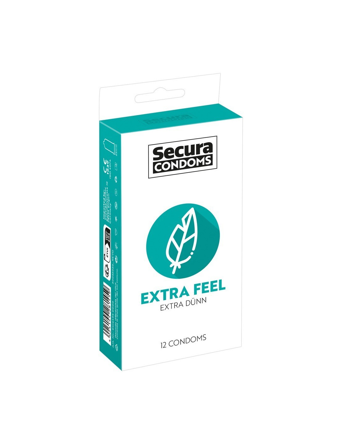 Preservativi trasparenti e setosi Extra Feel di Secura Condoms con pareti extra sottili per una sensazione naturale e pura. Con rivestimento idratante e serbatoio a base di silicone. Vegan-friendly. Inodore e insapore.