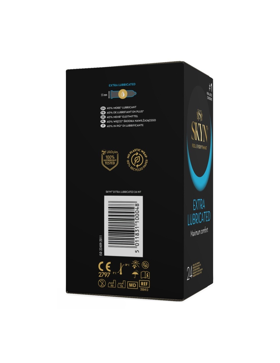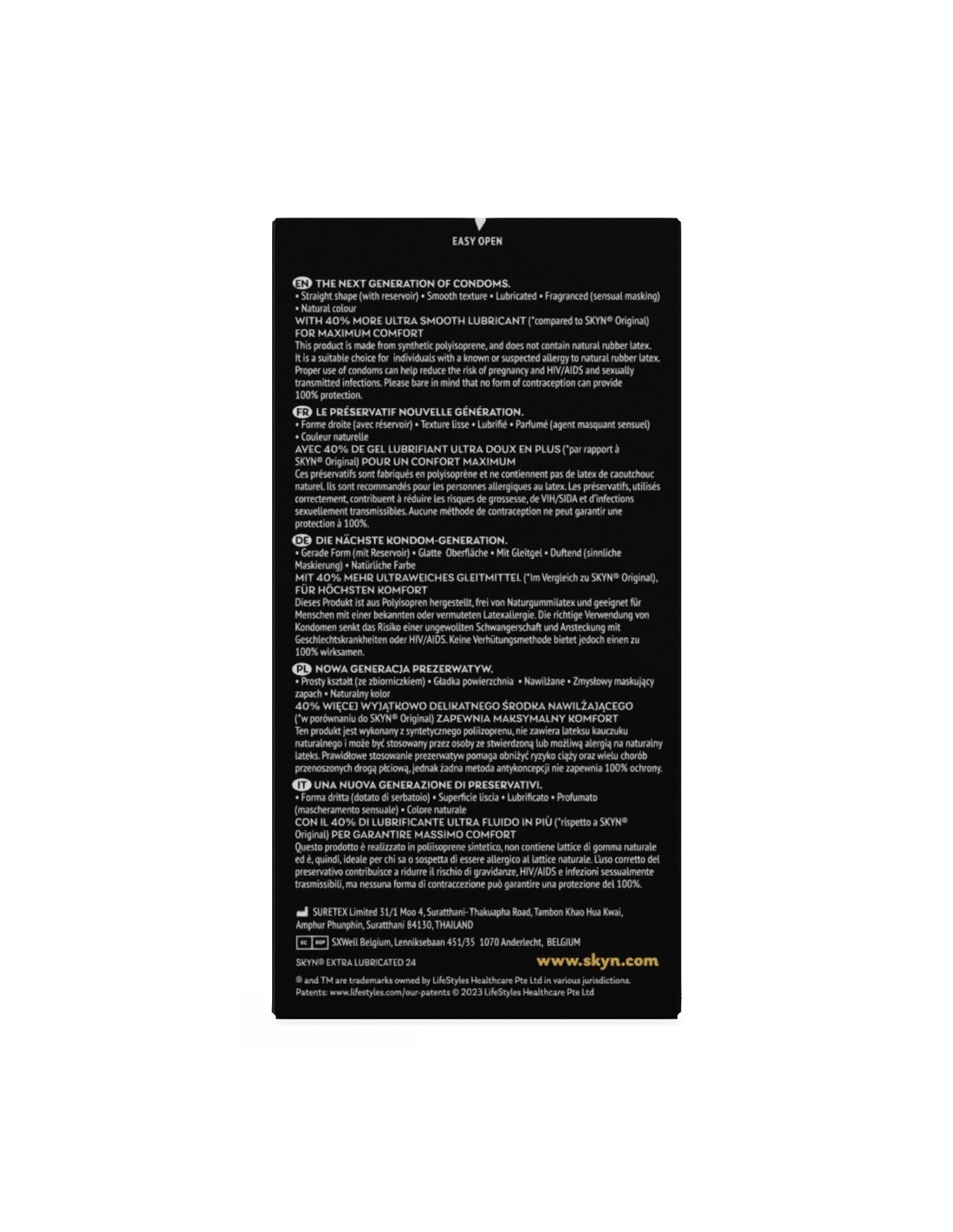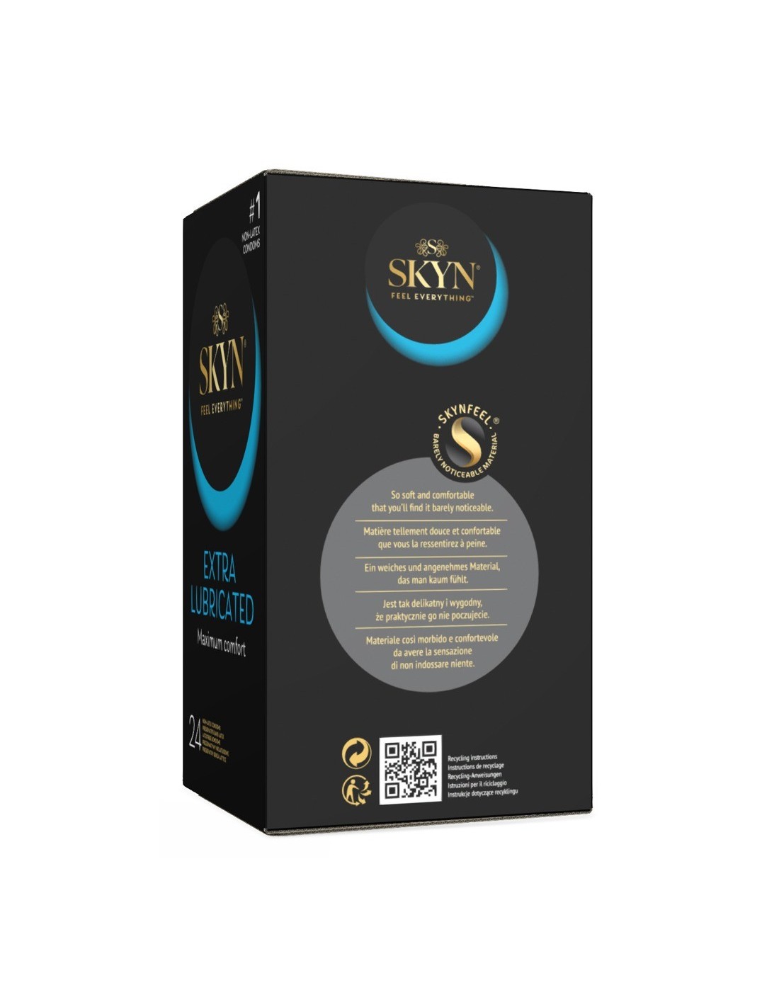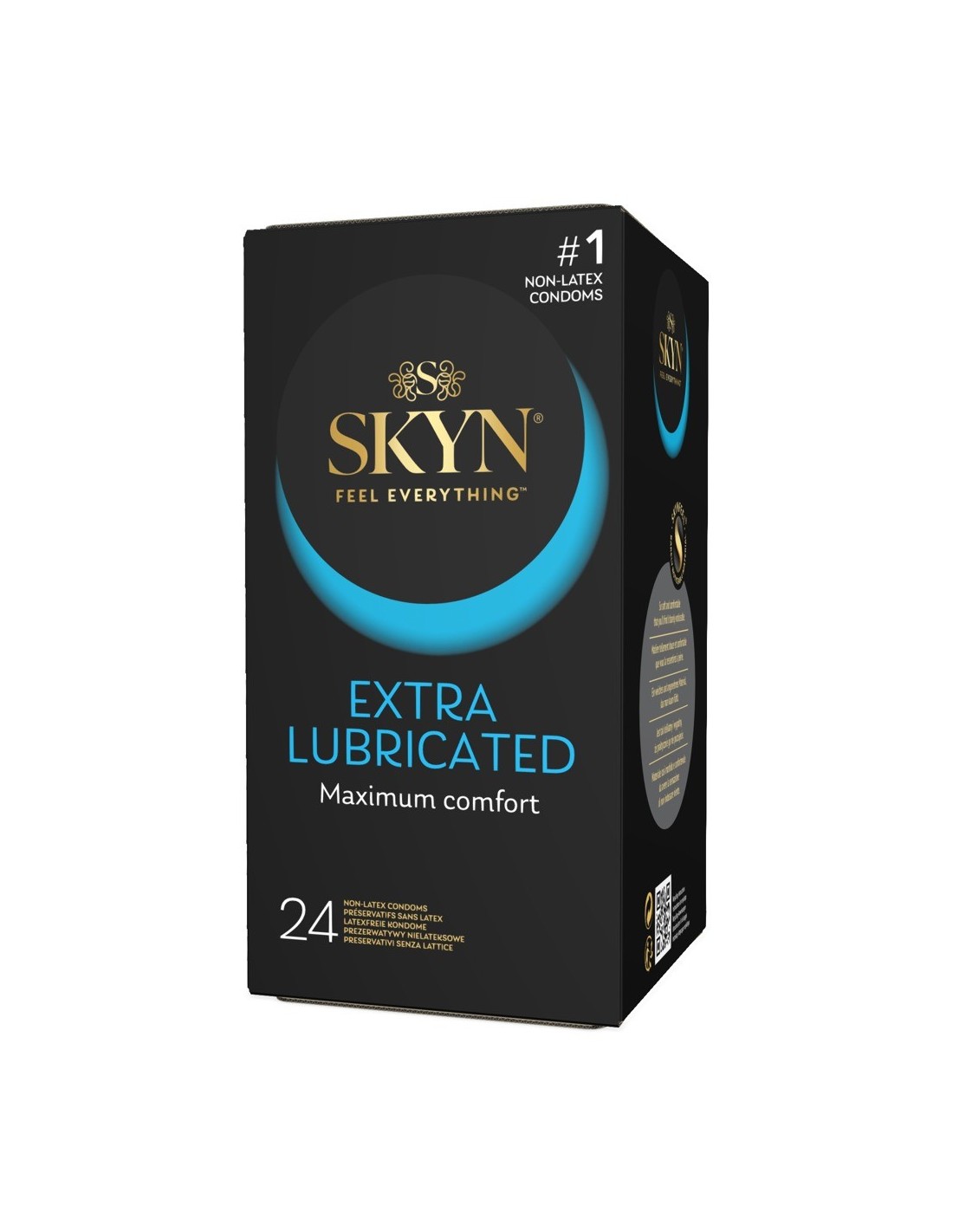 Preservativi trasparenti ed extra sottili Extra Lubricated di SKYN con il 40% in più di lubrificazione a base di silicone per esperienze sensuali delicate e confortevoli. Realizzati in Sensoprene (Poylisoprene): Morbido e piacevole al tatto, privo di lattice e inodore - ideale per le allergie e le sensibilità al lattice. Con serbatoio. Vegano.
