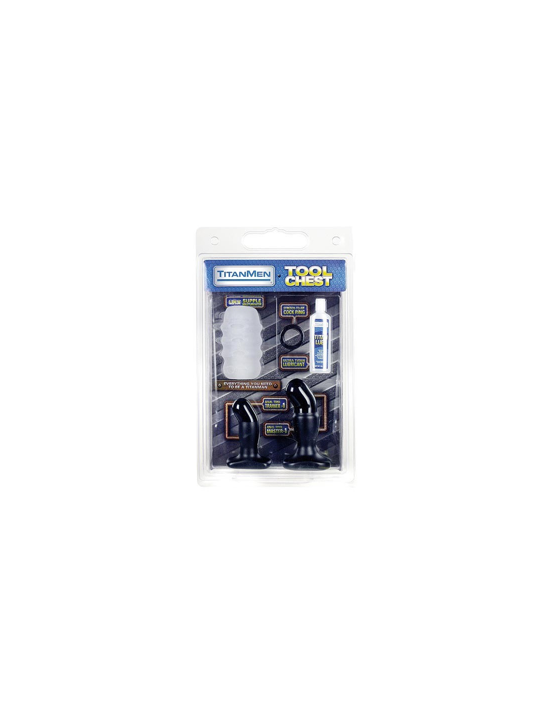 Das besondere Set fOr den Mann! Dann mache dich bereit fOr eine vOllig neue Erfahrung mit dieser sexy TitanMen Werkzeugkiste. Inbegriffen in diesem Kit sind fOnf elegante,gut gemachte Sex-Spielzeuge einschlieOlich TitanMen Anal-Tool Trainer. Das Set