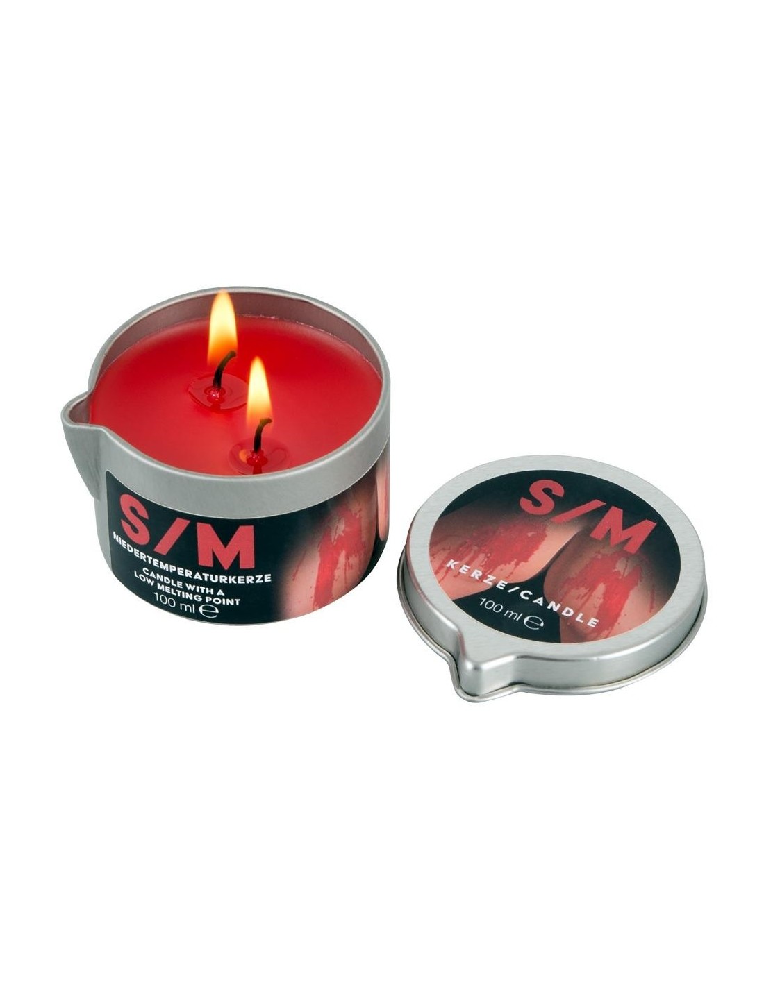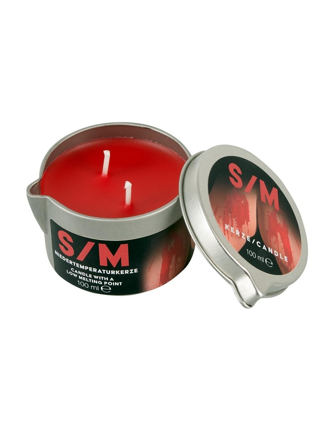 Candela S/M rossa a tinta unita Soft in barattolo con 2 stoppini per regolare il calore. Punto di fusione 50°/52°C. Piacevolmente dolorosa durante i giochi di cera, sembra sangue vero ed è facile da rimuovere dalla pelle.