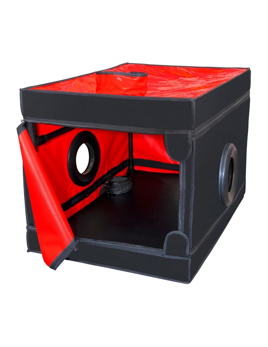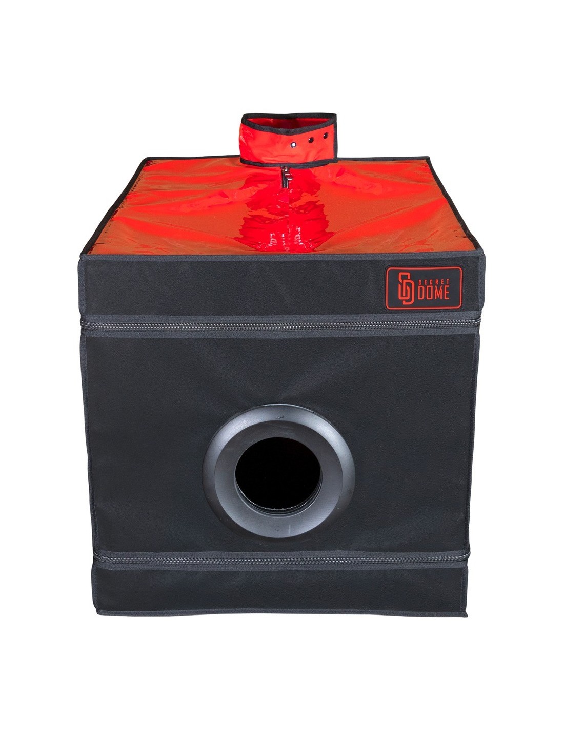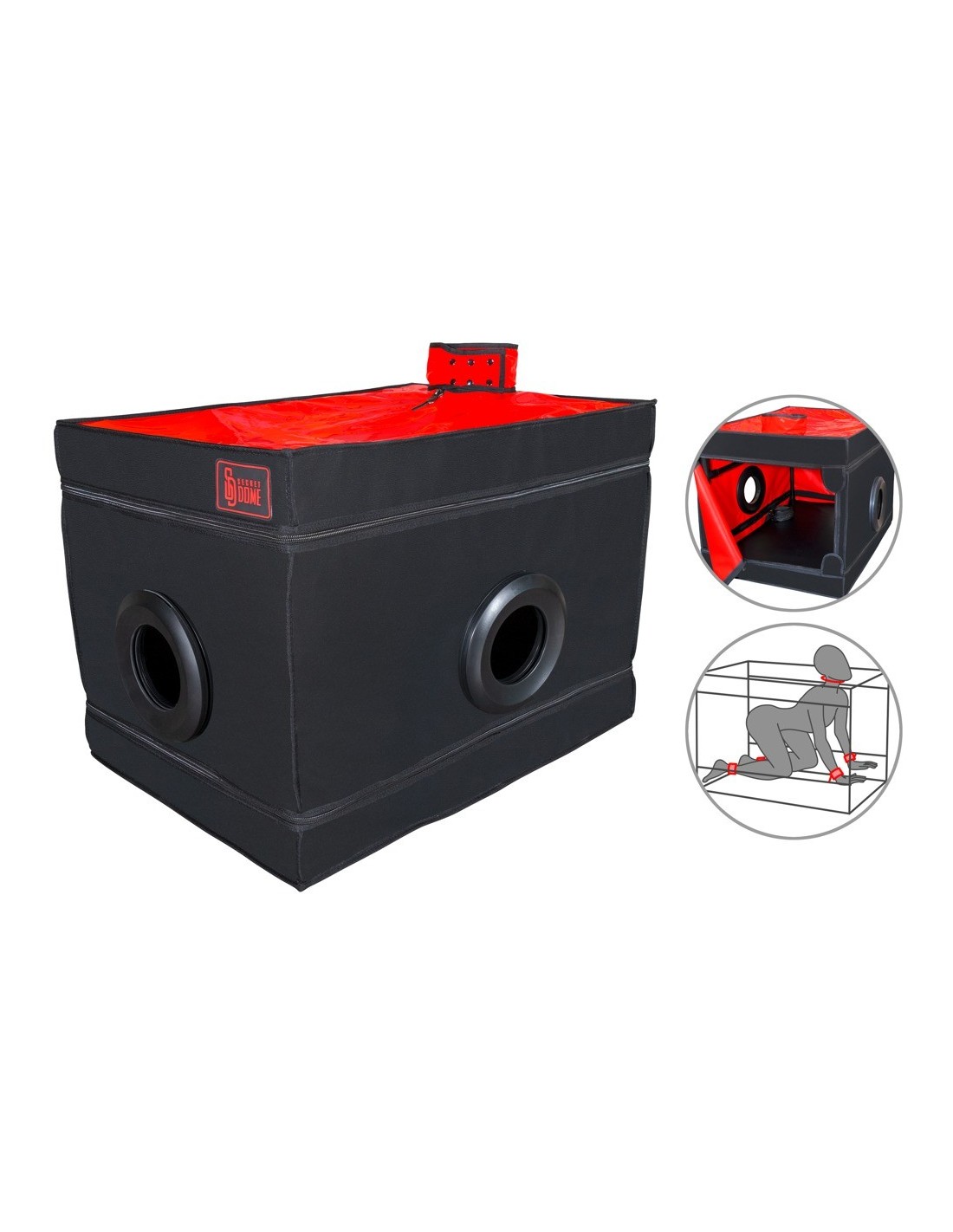 Cabina BDSM chiusa La Niche di Secret Dome per giochi glory hole, giochi dark, giochi di ruolo accattivanti e altre fantasie. La robusta cabina è veloce da montare e pronta per l'uso grazie al suo sistema tubolare a innesto e al robusto telone. Con 3 grandi aperture laterali. L'apertura per la testa è dotata di una cerniera e di un ampio collare regolabile. Comodo accesso tramite porta con cerniera. Una luce a LED e un morbido tappetino garantiscono un maggiore comfort. Le manette e le cavigliere in dotazione (1 paio ciascuna) possono essere posizionate all'interno a seconda delle esigenze. Le morbide manette imbottite possono essere indossate e regolate rapidamente grazie alle fibbie.