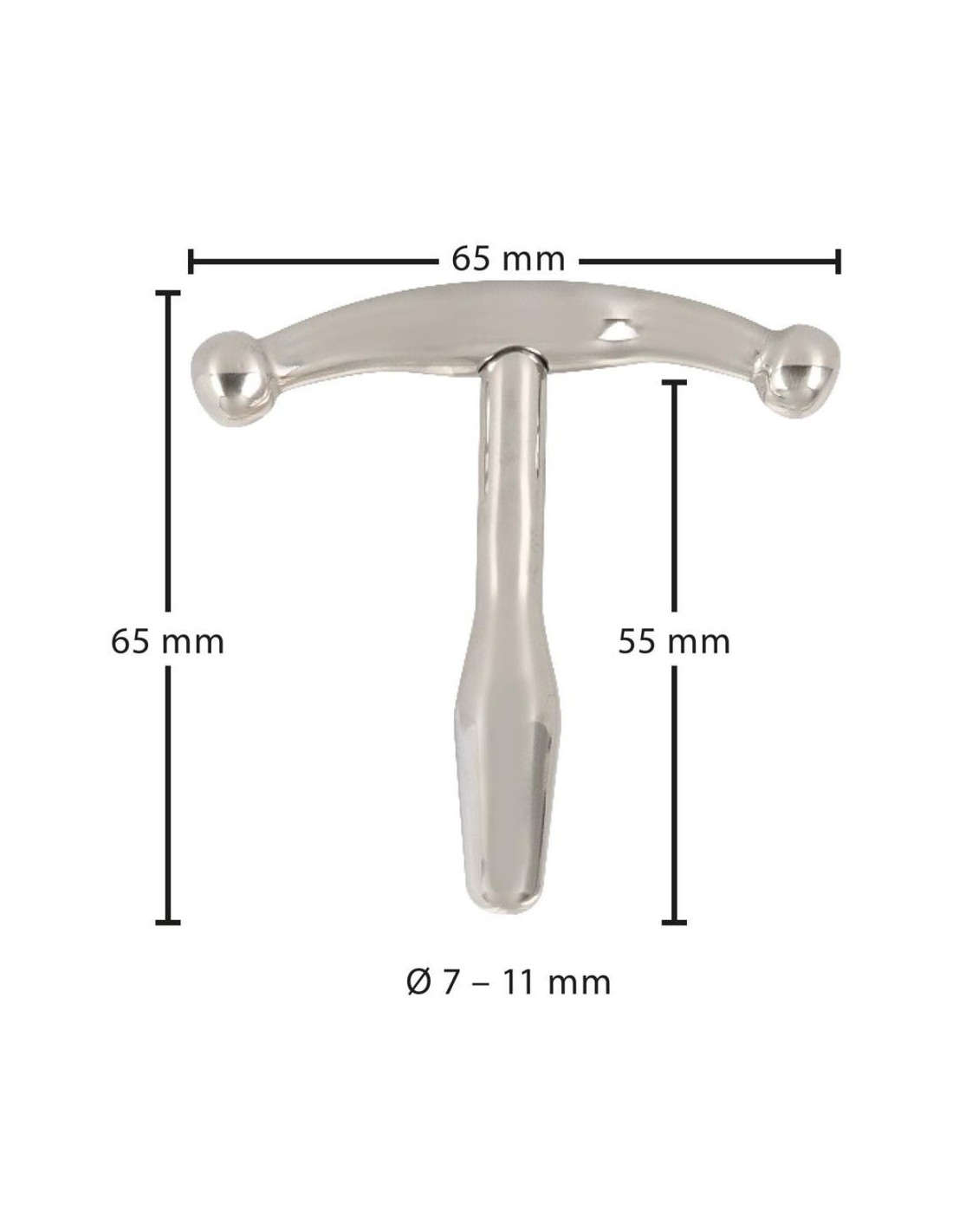 Lunghezza totale 6,5 cm, larghezza 6,5 cm. Lunghezza d'inserimento 5,5 cm; O̸ 0,7 cm-1,1 cm, peso 52 g. Metallo.