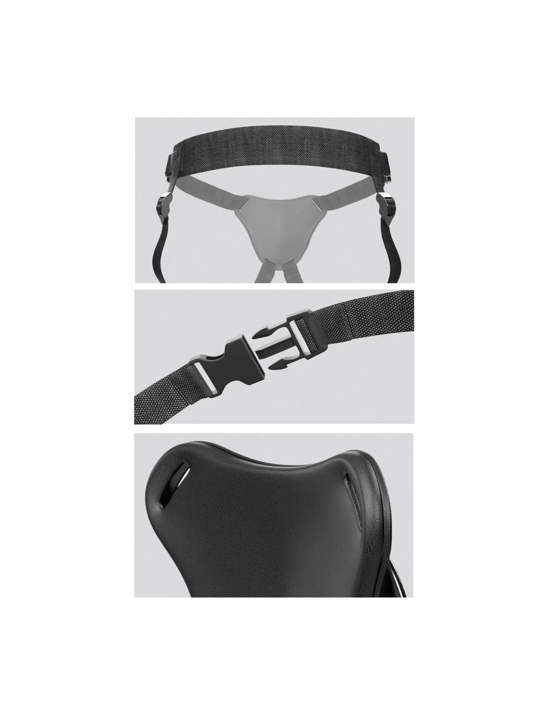 Il semplice sistema strap-on si basa su una piastra di aggancio anatomicamente curva in cui è possibile fissare/agganciare qualsiasi piede di aspirazione di un dildo o di un vibratore (non incluso). Il dildo/vibratore viene tenuto in una posizione ottimale per il piacere della scossa (push & play). La piastra di aggancio distribuisce la pressione in modo uniforme sulla zona pelvica, evitando così spiacevoli pressioni puntuali. Le robuste cinghie larghe sono regolabili con cursori in plastica per una vestibilità salda e confortevole.