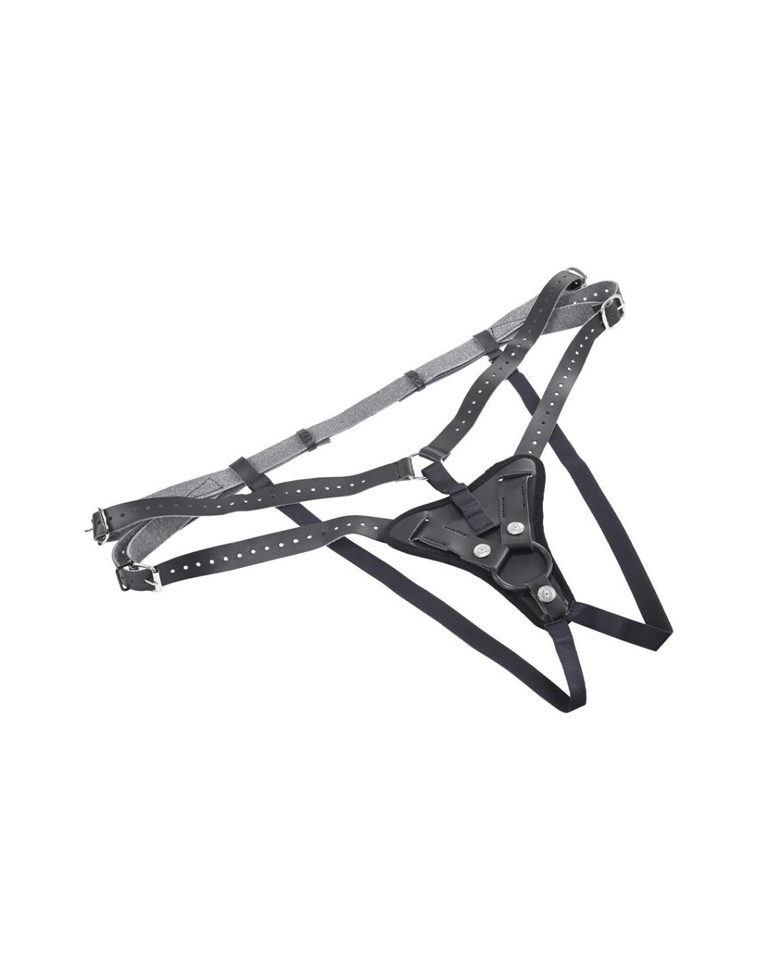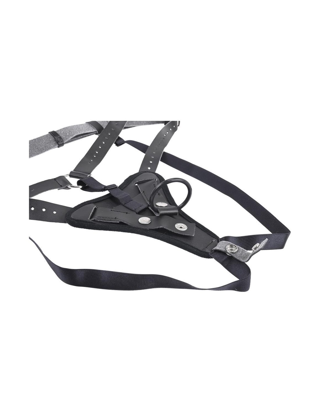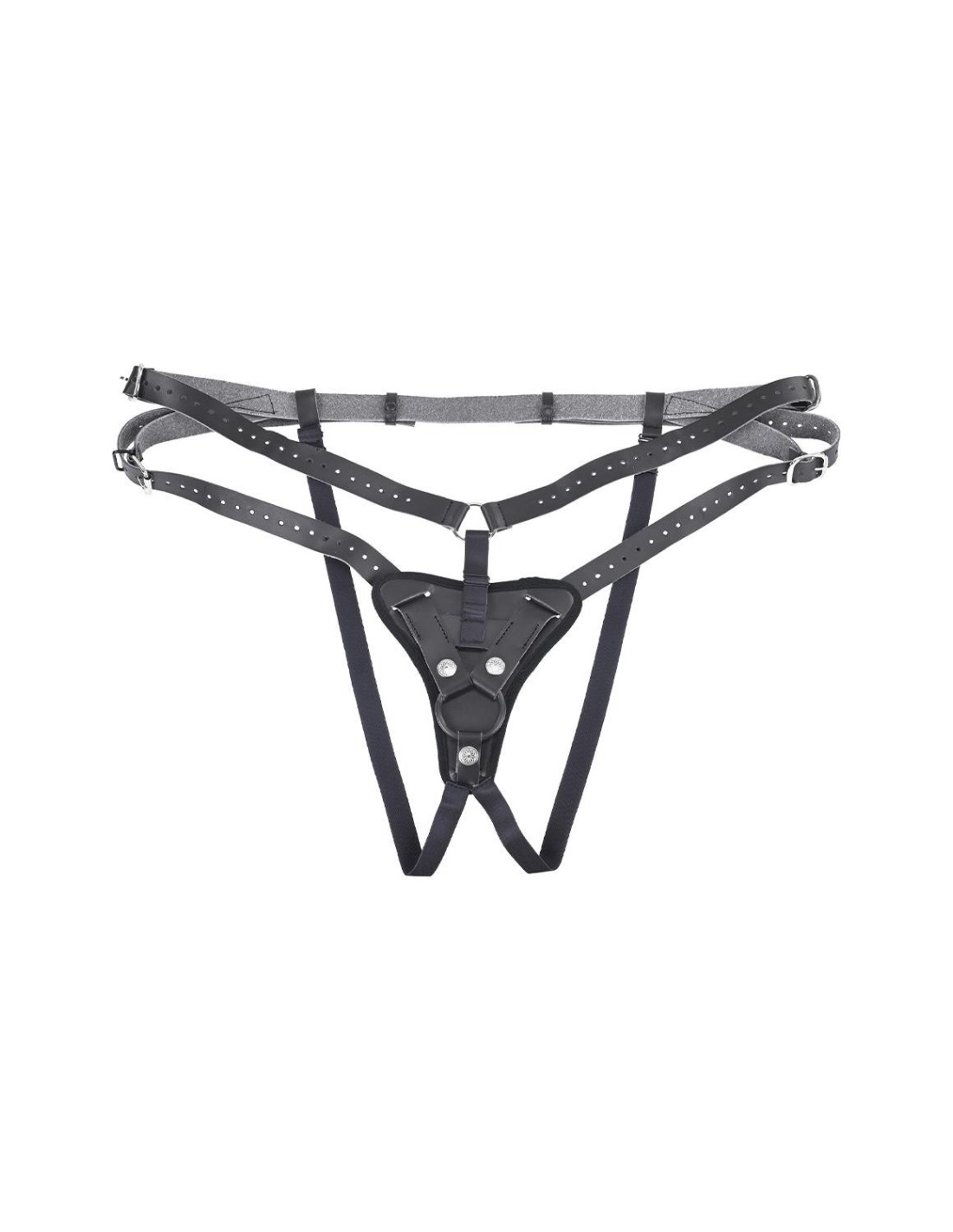4 adjustable buckles allow for a custom fit while the reinforced snaps hold the interchangeable O-Ring firmly in place. Feel powerful as every movement feels natural and imposing over your bottom trembling in blissful anticipation.