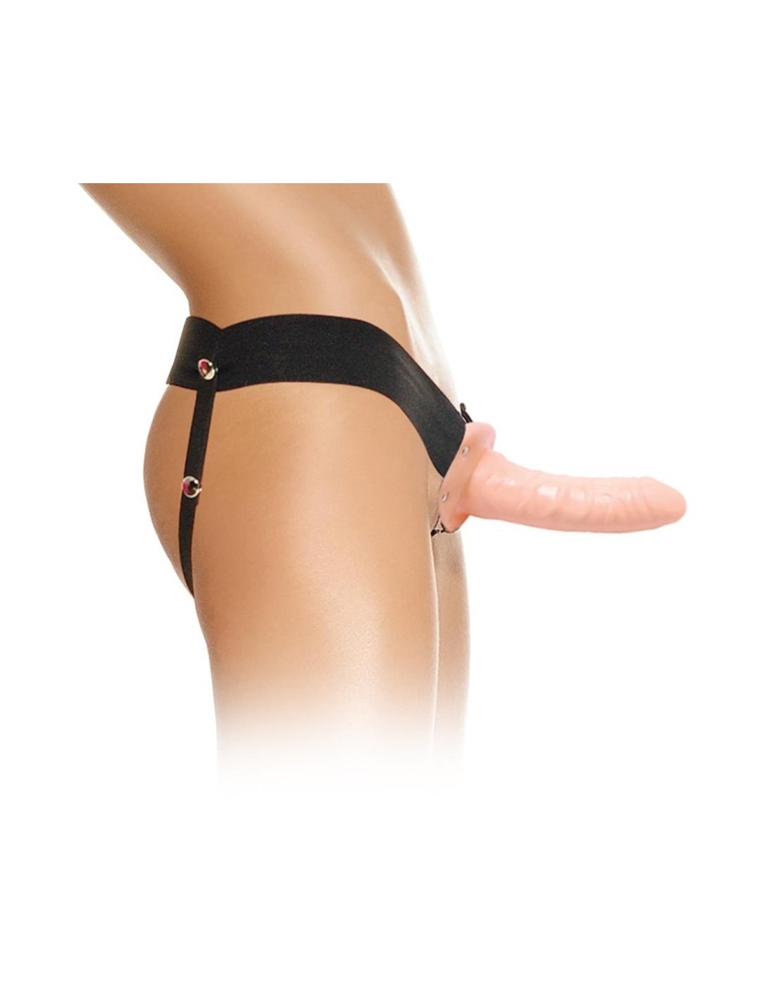 Dildo naturale cavo con testicoli turgidi e cinghia elastica. Lui lo indossa per avere più lunghezza e circonferenza. Lei lo indossa per viziarlo.