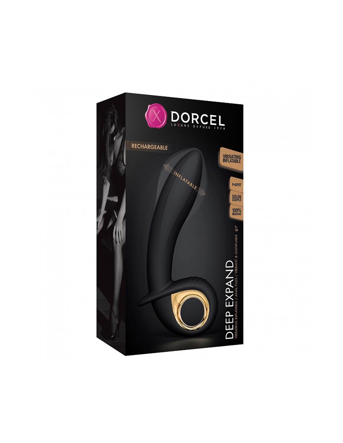 DEEP EXPAND -Nero - Vibrante-Gonfiiablle PLUG VIBRANTE ANALE GONFIABILE DEEP EXPAND Un vibratore è unico nel suo genere: grazie ad un pulsante, infatti, se lo vorrai, potrai gonfiare la punta aumentando il suo diametro da 3,5cm a 4,8cm. Realizzato in silicone ultra morbido, Deep Expand dispone di 10 modalità di vibrazione per il piacere di lui e di lei! Questo elegante toy di Dorcel può essere utilizzato sia come vibratore punto G che come vibratore anale, grazie all'impugnatura sicura: dopo averlo gonfiato riuscirà a stimolare facilmente tutti i punti più sensibili. Una volta inserito in vagina, per una stimolazione più intensa del punto G basterà premere il pulsante centrale per farlo gonfiare: una volta raggiunta la dimensione desiderata, tutto ciò che devi fare è rilasciare la pressione sul pulsante. Puoi aumentare o diminuire gradualmente la sua dimensione per scegliere quella più adatta alle tue zone intime. Una singola pressione del pulsante superiore sgonfierà questa estremità per una facile rimozione. Sarà lo stesso a livello anale, gli uomini beneficeranno di una perfetta stimolazione della prostata. Grazie al suo design elegante e alla forma ergonomica, ti sorprenderà con la sua testa gonfiabile: le sue dimensioni generose assicurano momenti di piacere indimenticabili. Deep Expand di Dorcel infatti riesce a garantire una stimolazione perfetta delle tue zone erogene per farti godere di orgasmi intensi. La sua consistenza in silicone e la sua forma ti offriranno una penetrazione molto delicata. Il vibratore espandibile di Dorcel potrà essere utilizzato anche sotto la doccia, ha batteria al litio ricaricabile tramite cavo USB e una volta caricato godrai dei suoi benefici per 1 ora senza interruzioni o perdita di intensità. Consigliamo l'uso di un lubrificante a base acquosa per evitare di rovinare il silicone del vibratore e raccomandiamo la detersione con un toy cleaner prima e dopo ogni utilizzo. Materiale: ABS, Silicone Utilizzo: Punto P, Punto G Colore: Nero Lunghezza: 16,2 cm Lunghezza inseribile:11,5 cm Diametro massimo: 4,8 cm Modalità di vibrazione: 10 Impermeabile: Sì Batteria: Litio ricaricabile USB
