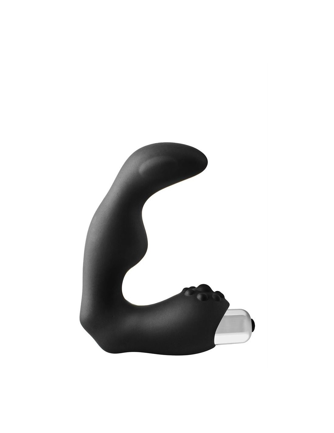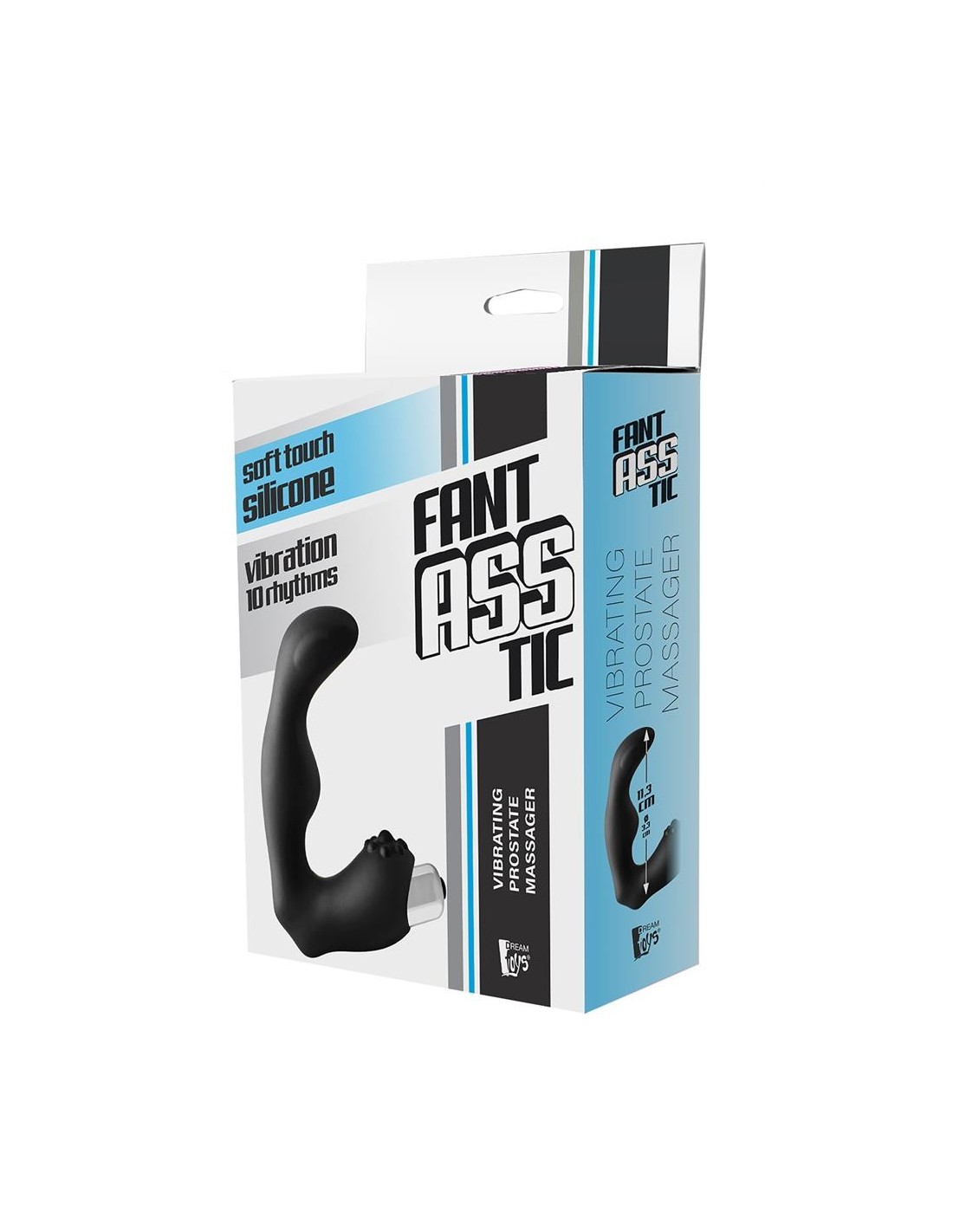 This FantASStic vibrating prostate massager is made of smooth black silicone that is soft to the touch. The upper end has a curved shape that is designed to reach and stimulate the P-spot. The bottom end of the prostate stimulator will stimulate the perineum and contains the vibrating bullet that is removable. The bullet offers 10 vibration rhythms that can be operated with a single button.