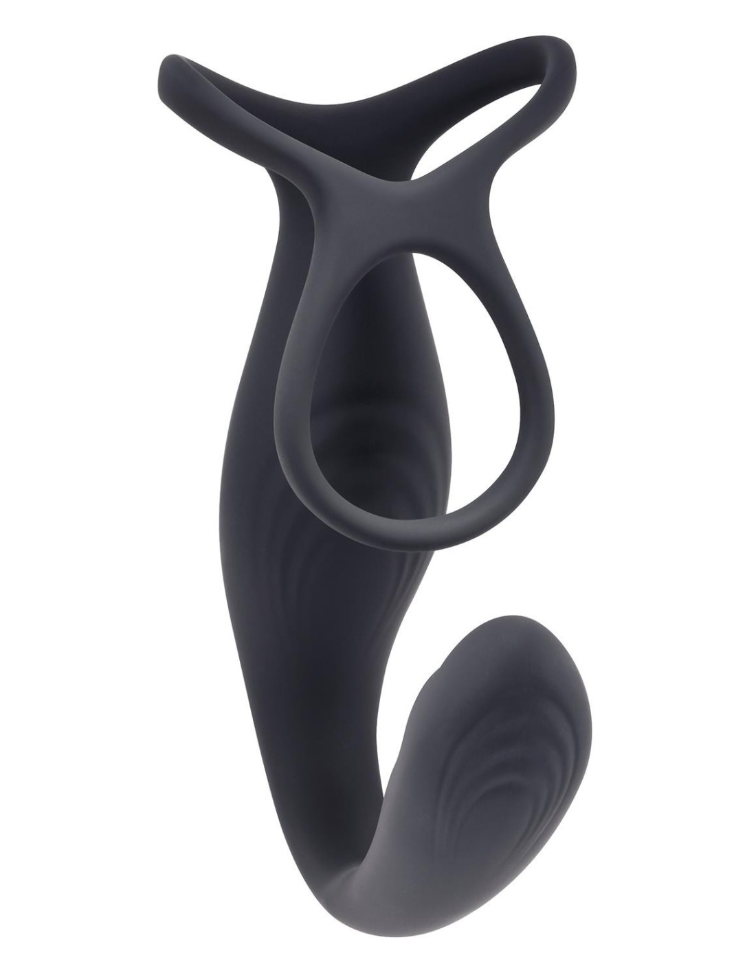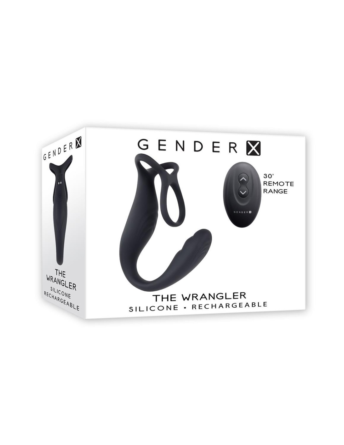 The Wrangler is an innovative 3-part toy with two powerful motors that operate independently via remote control. The vibrating center piece and facing textured oval shaft connect with a thin flexible neck while two stretchy loops bend out from the other end, creating multiple possibilities.