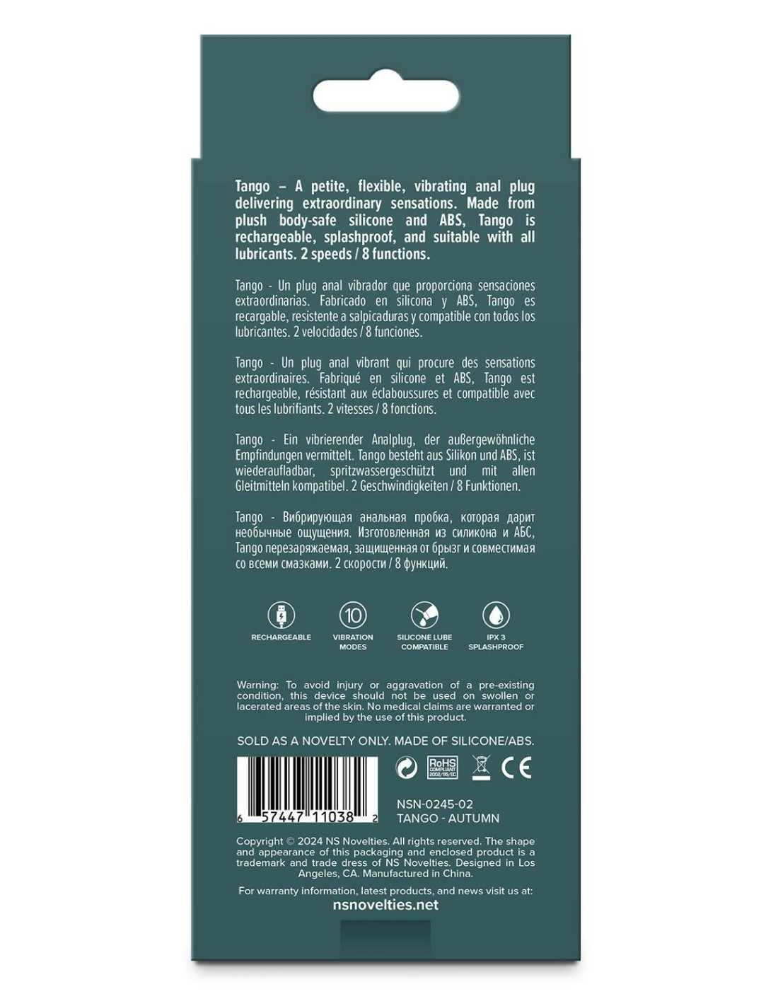 Tango – A petite, flexible, vibrating anal plug delivering extraordinary sensations. Made from plush body-safe silicone and ABS, Tango is rechargeable, splashproof, and suitable with all lubricants.