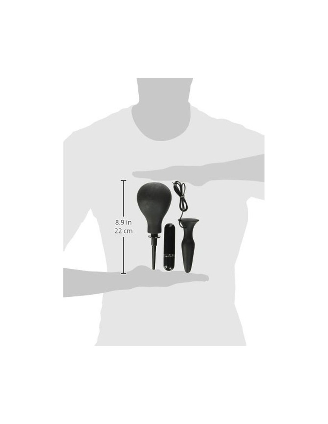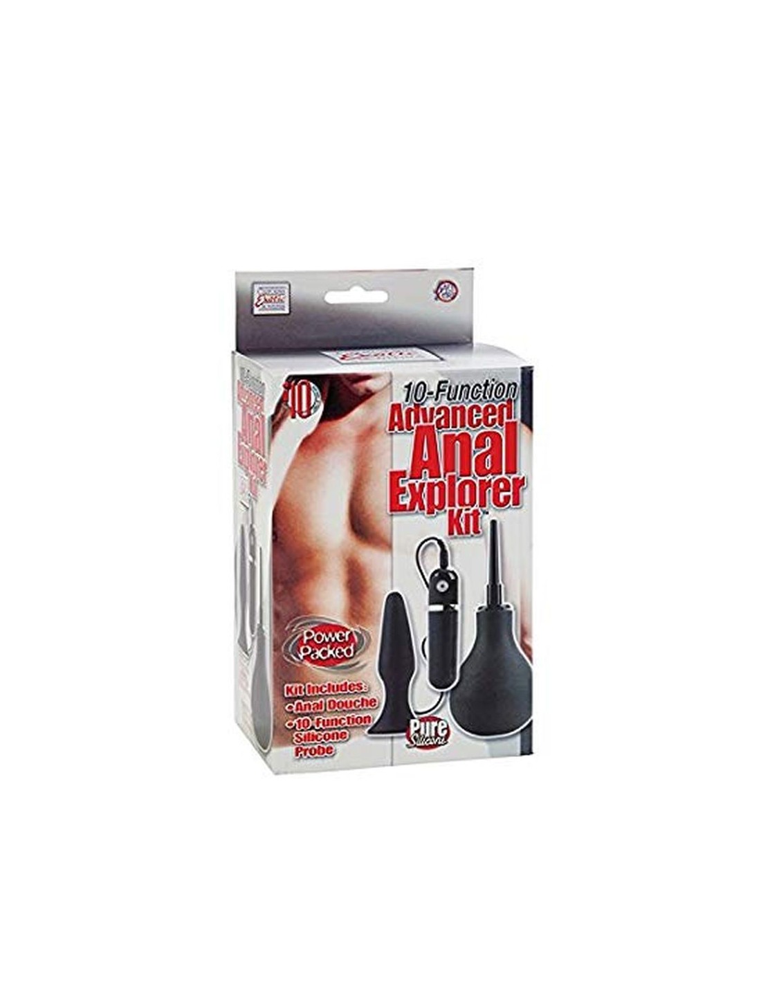 California Exotic Novelties 10-Function Advanced Anal Explorer Kit, Nero Kit stimolante, versatile, facile da usare Doccia anale con soffice bulbo flessibile e punta affusolata rimovibile Sonda vibrante in silicone con base a ventosa Power pack con 10 funzioni di vibrazione, pulsazione ed escalation Jack plug-in, luce LED Misure: - Doccia anale: Lunghezza ca. 21 cm - Plug sonda anale: Lunghezza ca. 13 cm - Diametro 3,5 cm Materiale: Silicone Batterie: 2 AAA (non incluse)