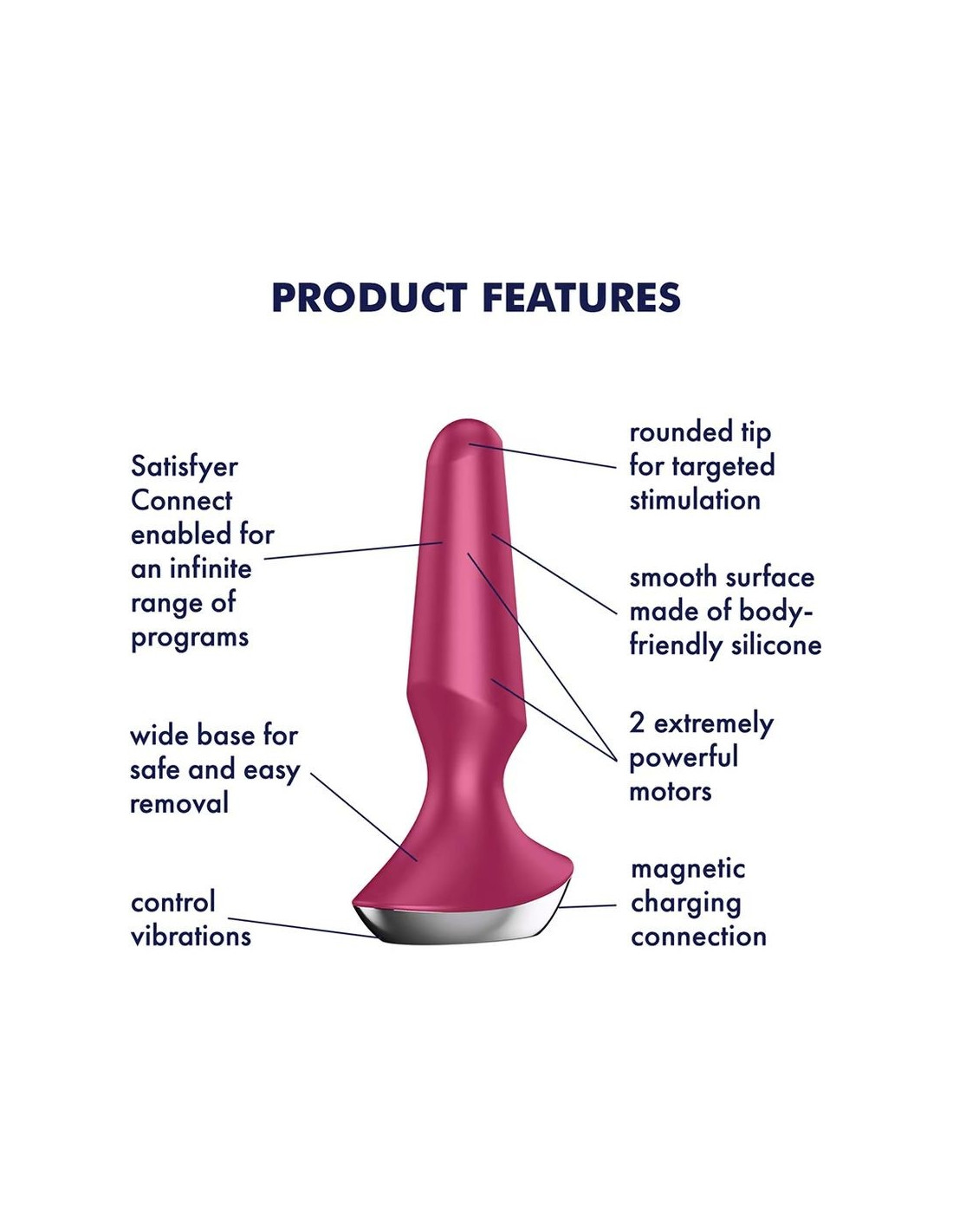 Grazie alla forma conica con una punta arrotondata, il Plug-ilicious 2 eccita con precisione il punto P e lo stimola tramite vibrazioni potenti generate da 2 motori. Una base ampia, in silicone morbido e la compatibilità con la nostra applicazione completano le sue caratteristiche. - Compatibile con l'app gratuita Satisfyer, disponibile su iOS e Android - I 2 motori possono essere controllati separatamente, consentendo numerose opzioni di combinazione delle vibrazioni - Adatto a tutti i generi Satisfyer Plug-ilicious 2: plug anale vibrante per il massaggio prostatico Immergiti in un'estasi sensuale con il Satisfyer Plug-ilicious 2! Questo vibratore anale per uomo e donna ha una forma conica e una punta appiattita che riempiono comodamente il tuo ano, coccolandoti anche con vibrazioni intense. I programmi di vibrazione possono essere controllati sia tramite il pannello di controllo integrato che tramite l'applicazione Satisfyer Connect. C'è molto da scoprire con l'applicazione gratuita: Oltre a creare i tuoi modelli di vibrazione, puoi anche scambiare idee con altri utenti o avviare chiamate video e audio con il tuo partner. L'applicazione Satisfyer Connect è disponibile per Android, iOS e Apple Watch. Quali altri vantaggi offre questo vibratore anale con controllo tramite applicazione? Il Satisfyer Plug-ilicious 2 è realizzato in morbido silicone delicato sulla pelle ed è facile da inserire grazie alla sua superficie liscia. L'ampia base funge anche da impugnatura e garantisce un utilizzo sicuro. Per un'esperienza fluida, consigliamo di utilizzare anche un lubrificante: i lubrificanti Satisfyer sono disponibili in diverse versioni e sposano perfettamente il materiale del plug. Inoltre, il Plug-ilicious 2 è impermeabile (IPX7): non solo è il compagno ideale per ore di gioco sotto la doccia, ma può anche essere facilmente pulito con acqua tiepida e sapone neutro. Se dovesse scaricarsi, le batterie integrate possono essere ricaricate con il cavetto di ricarica USB incluso. Vibrazioni profonde e superpotenti Silicone dermocompatibile Impermeabile (IPX7) Utilizzo possibile anche senza App Programmi pre-impostati modificabili Infinita varietà di programmi con la App Modalità sussurro Batteria agli ioni di litio Cavo di ricarica magnetico USB incluso Facile da pulire Caratteristiche "Plug-ilicious 2" Lunghezza: 135 mm Adatto per: Donne, Uomini Peso: 85.7 g Larghezza: 69.4 mm Altezza: 39.8 mm Con vibrazione: Si Stimolazione: Anale A tenuta d’acqua: Si Materiale: Resina ABS , Silicone Compatibilità dell'app Satisfyer Connect: Si