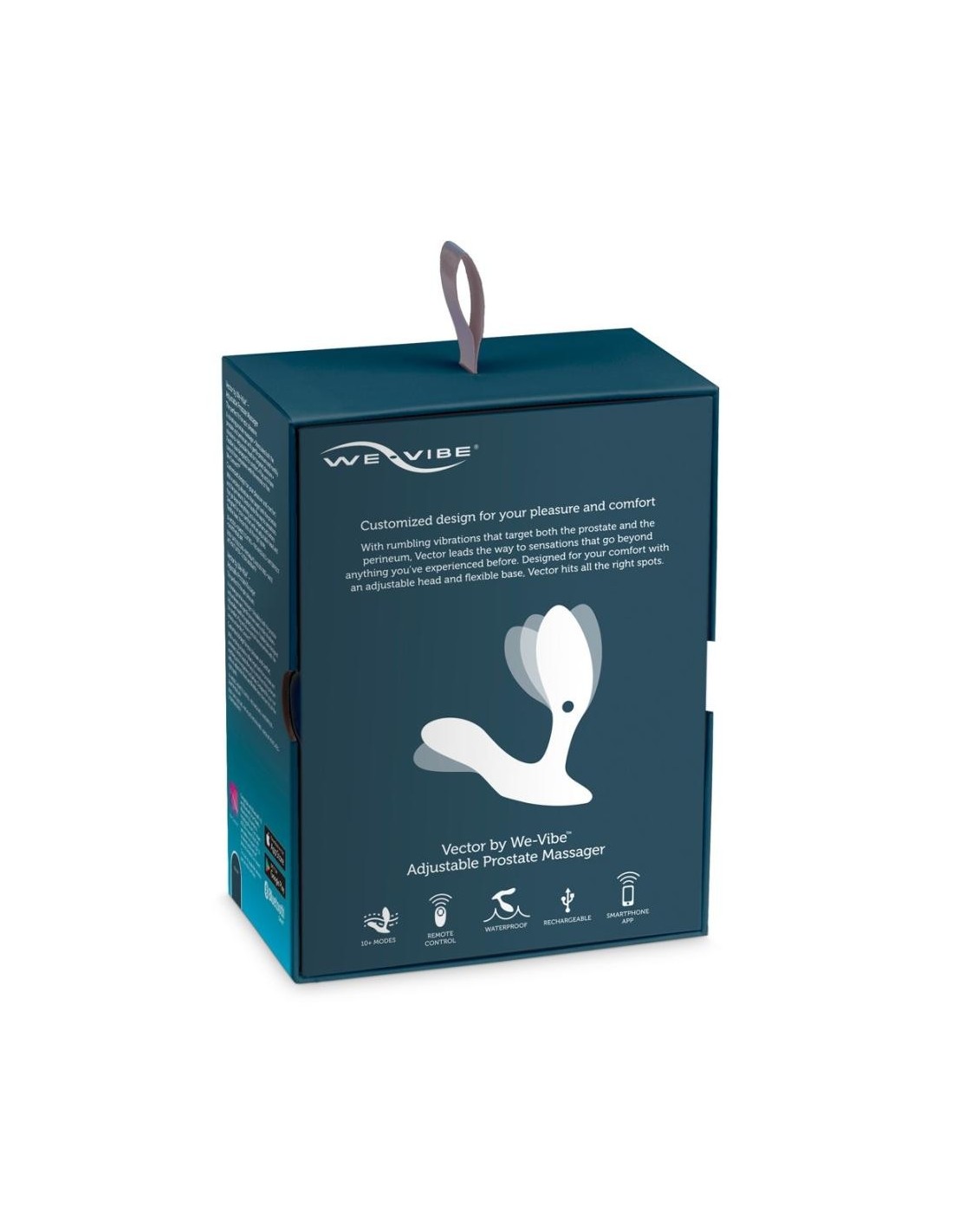 Ergonomically shaped anal plug with a grooved perineum stimulator. Pleasantly flexible for an ideal fit and made of silky silicone. Stimulates prostate and perineum with 2 motors that are separately adjustable and features 10 whisper quiet vibration modes each. Includes remote control. Compatible with the We-Connect app for IOS and Android via bluetooth. There you can create individual stimulation programs and conveniently control Vectors vibrations with your smartphone. The app also features a chat, voice and video function to allow long distance sexual closeness. As a security measure the bluetooth interface only connects with 2 devices (remote control and 1 additional smartphone). To change the control unit a reset needs to be done. Can be recharged with the included Magnetic Charger. Waterproof.