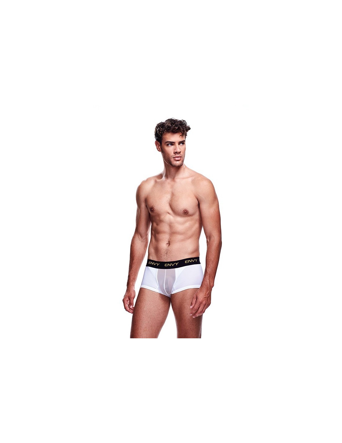 Classic meets sex appeal in this short boxer brief. The traditional ENVY MENSWEAR band and the slim fi t of these boxers feels simple enough, but the sheer mesh pouch makes these just a bit more fun to slip into under your jeans!