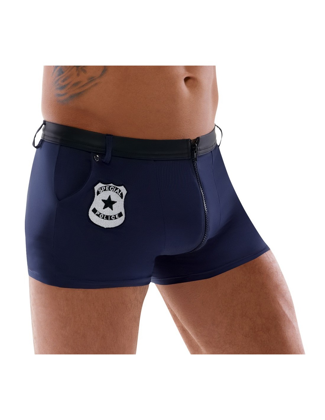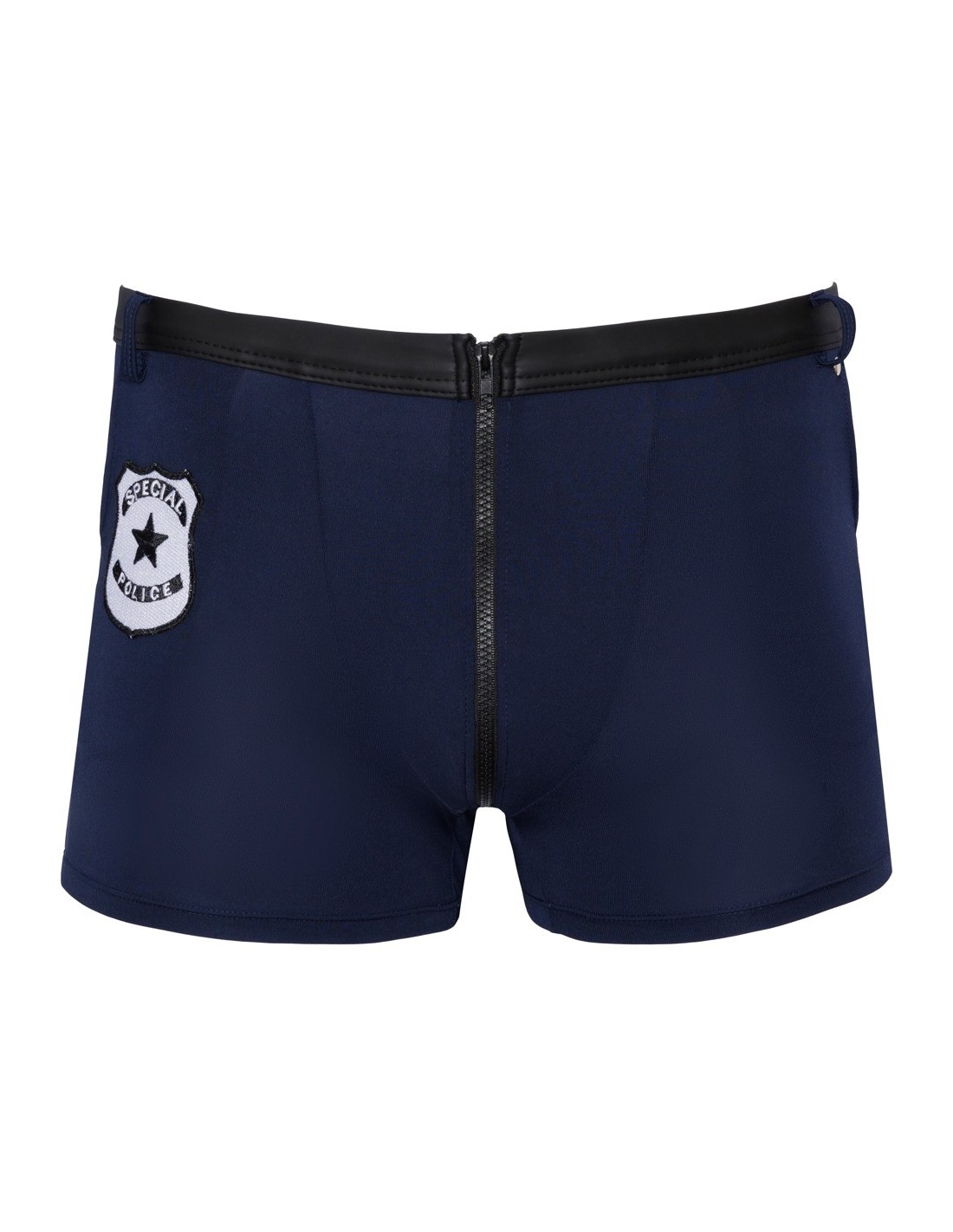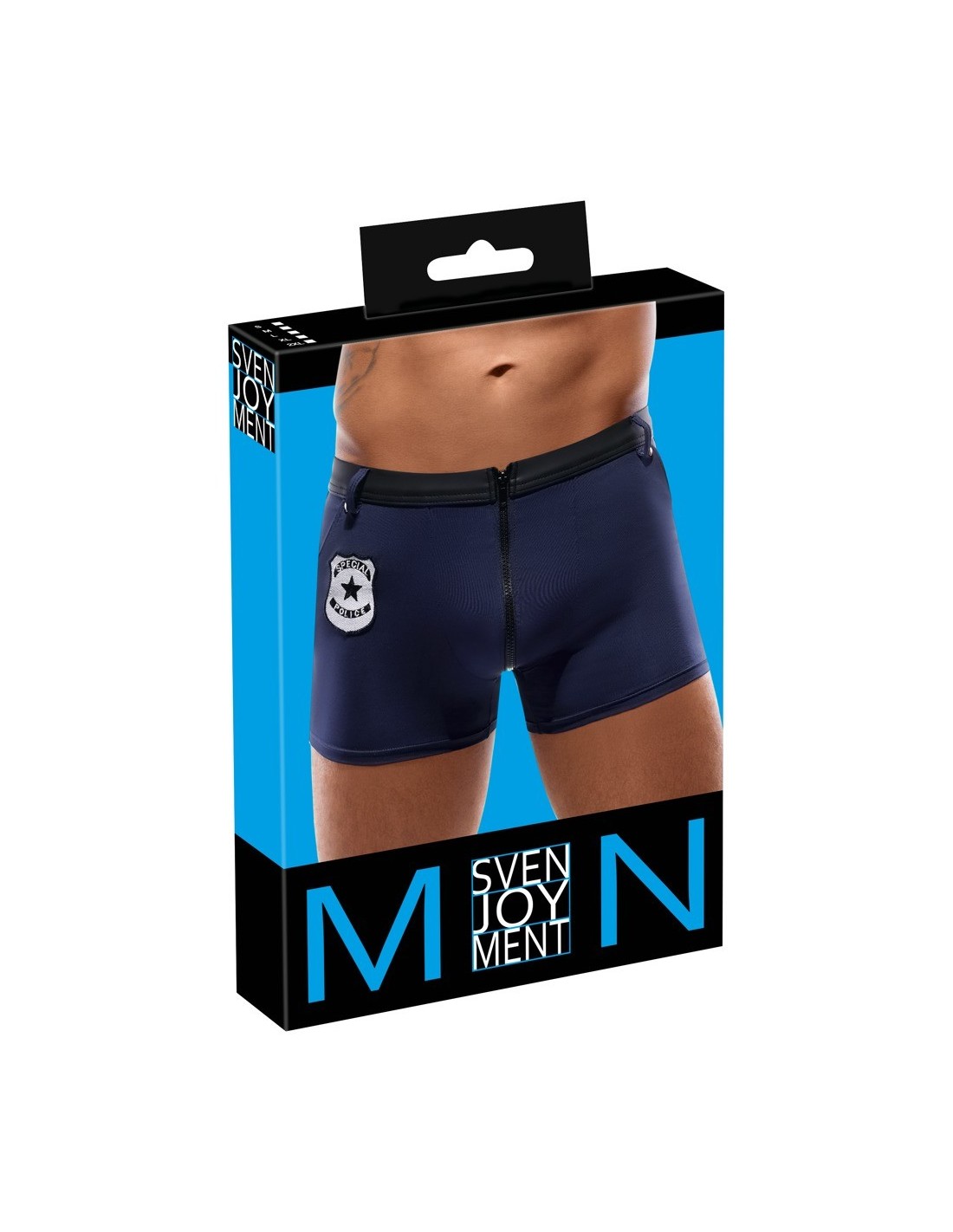 Tight boxer briefs from Svenjoyment in a special police style with eye-catching emblem on the front. In typical dark blue with black matte look waistband and belt loops. Soft and stretchy for maximum comfort. Underlaid zip at the front.