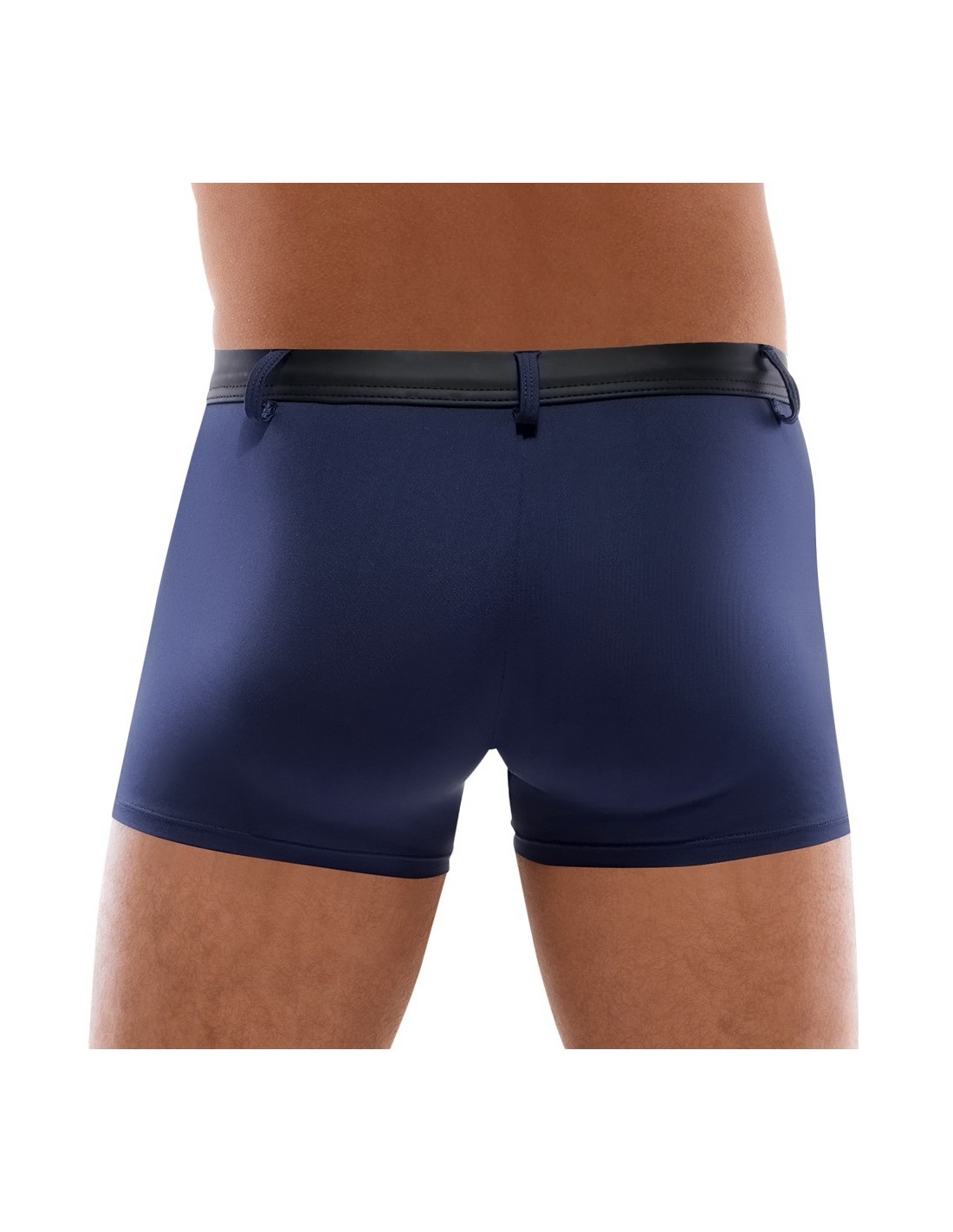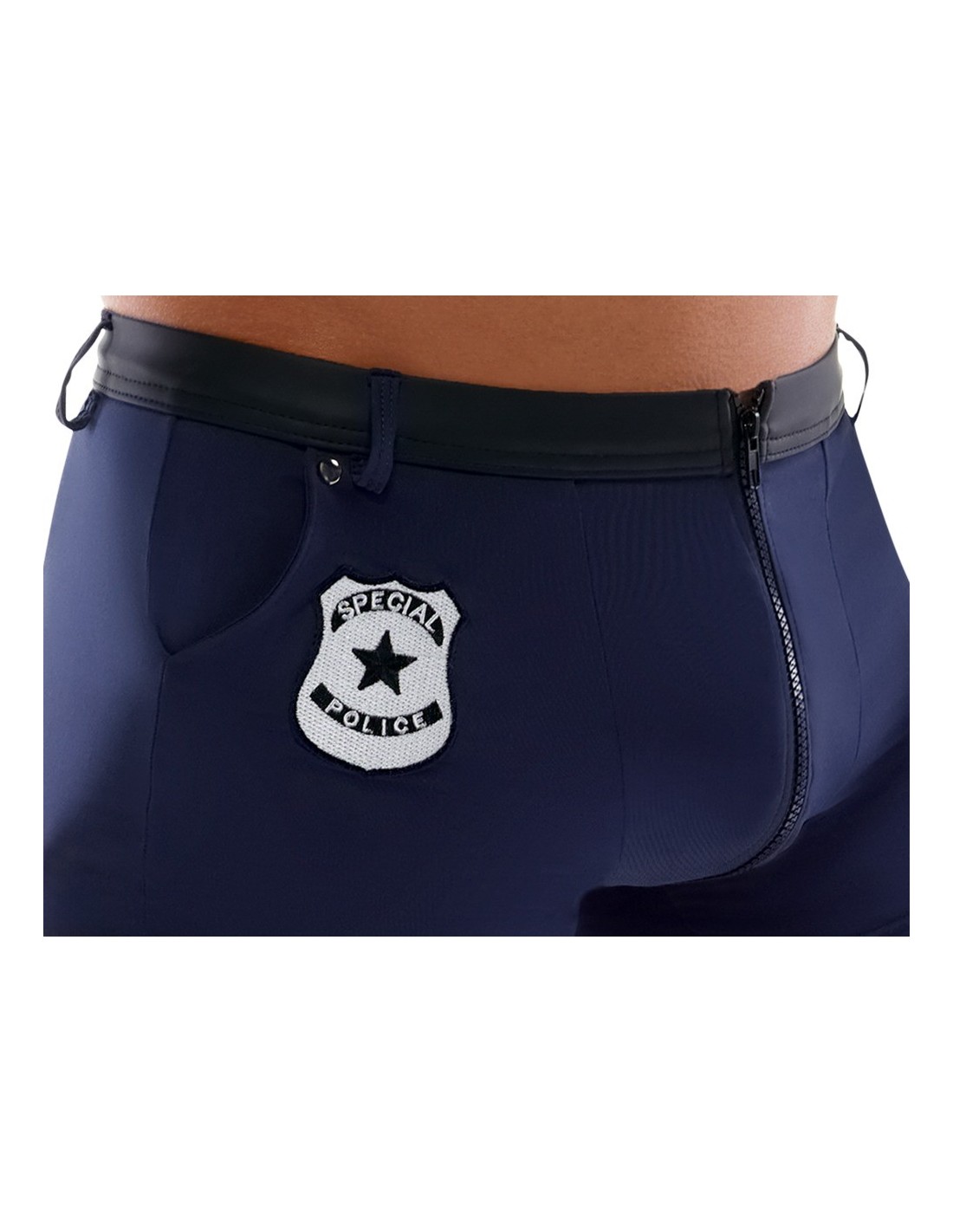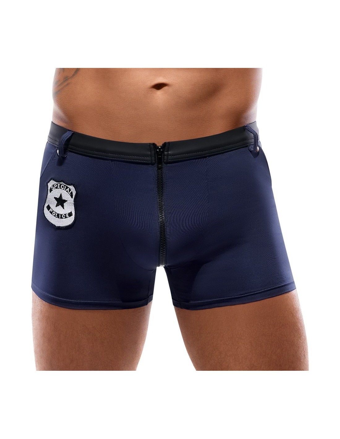 Tight boxer briefs from Svenjoyment in a special police style with eye-catching emblem on the front. In typical dark blue with black matte look waistband and belt loops. Soft and stretchy for maximum comfort. Underlaid zip at the front.