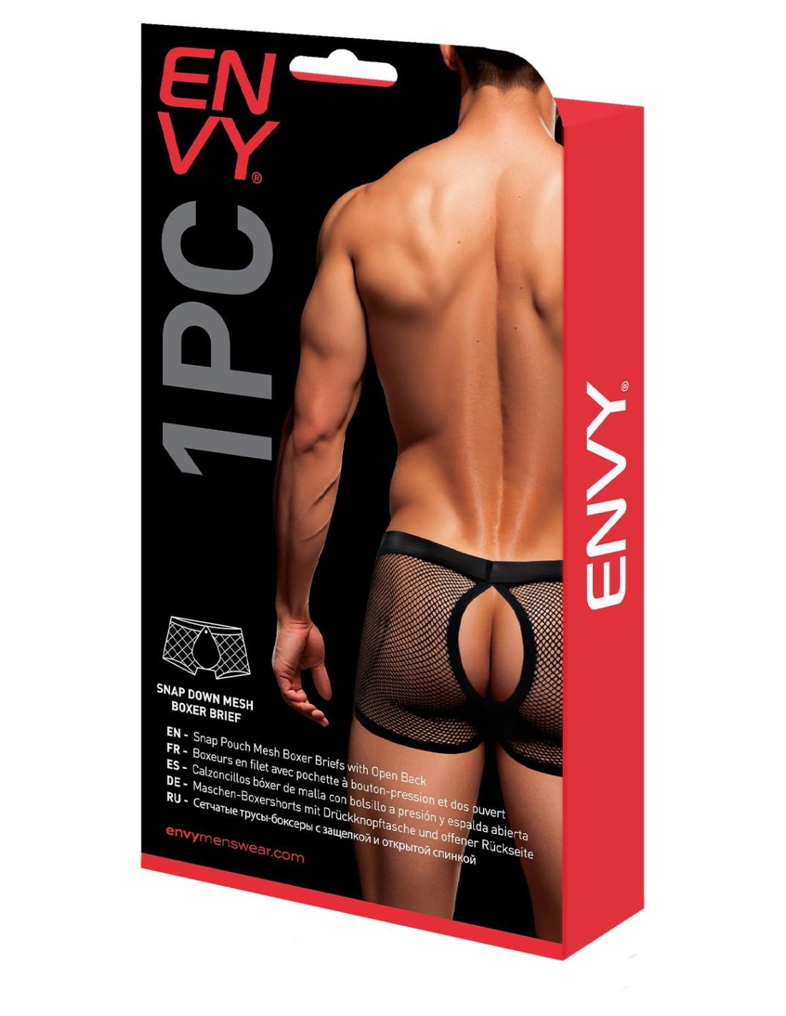 The Envy Menswear Snap Pouch Mesh Boxer Briefs in black are a bold and provocative addition to the world of men's underwear. Crafted from a breathable mesh fabric, these boxer briefs feature a unique design with an open back, adding an element of daring sensuality. The highlight of these boxer briefs is the strategically placed snap pouch at the front, secured with a single snap closure. This innovative feature allows for a teasing and playful reveal, offering a tantalizing glimpse of what lies underneath.