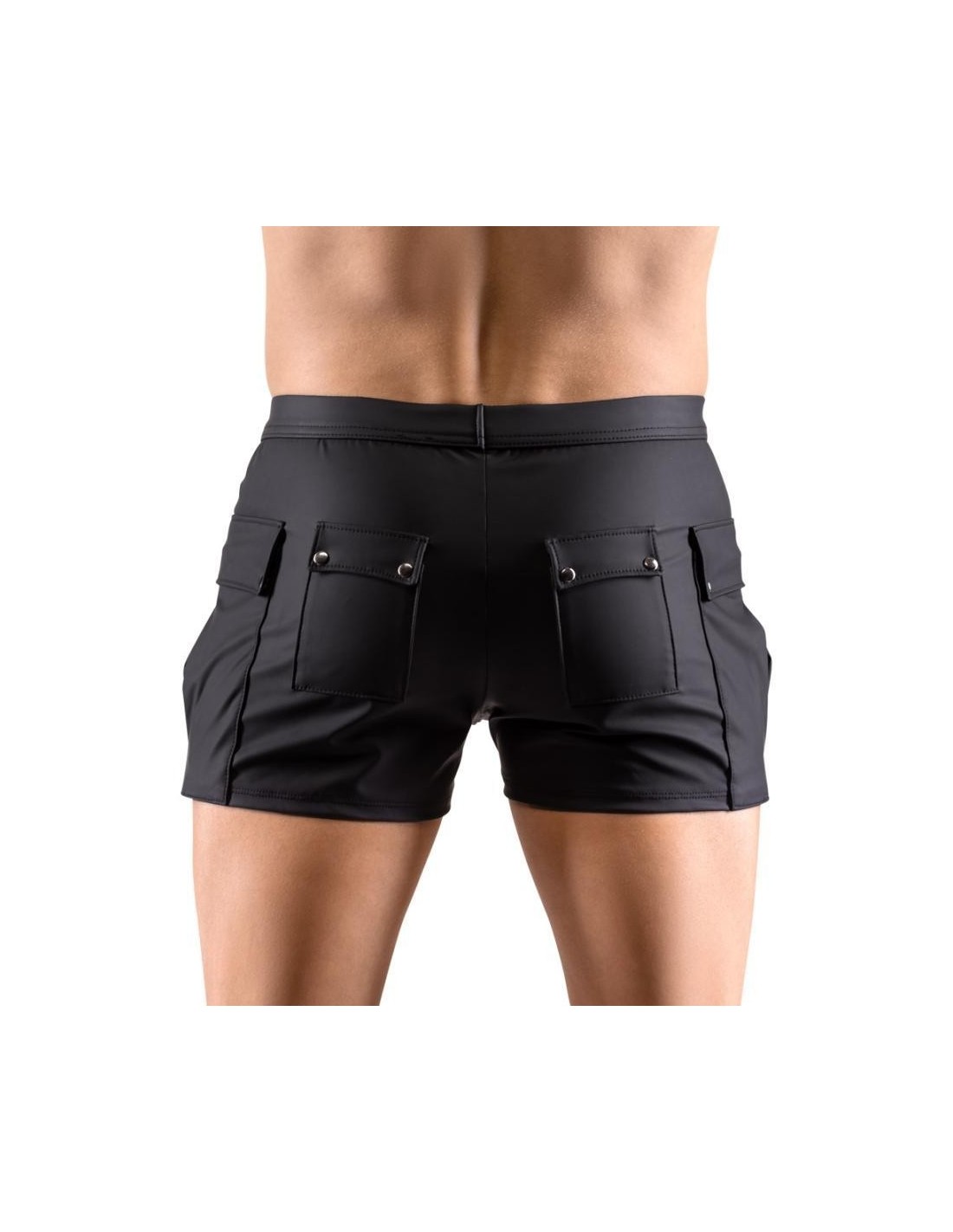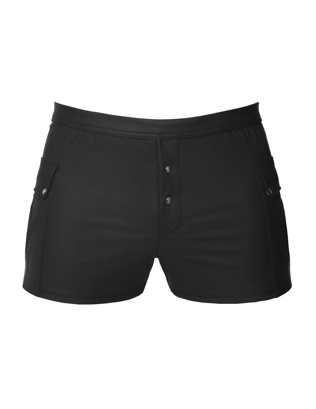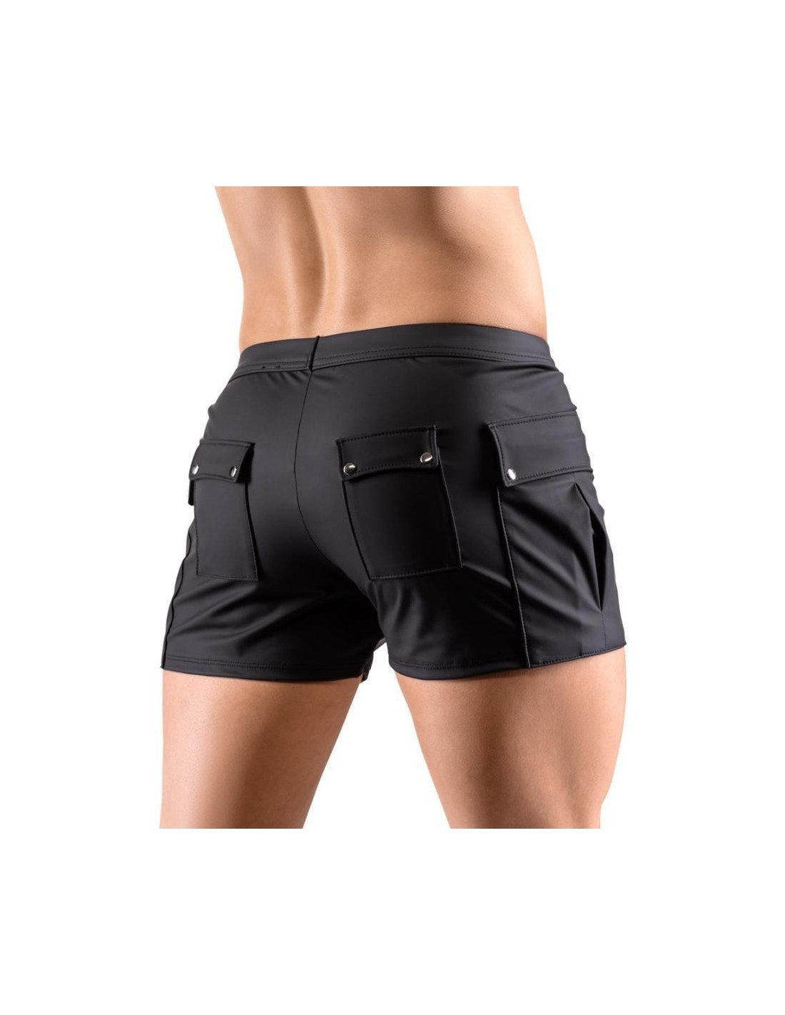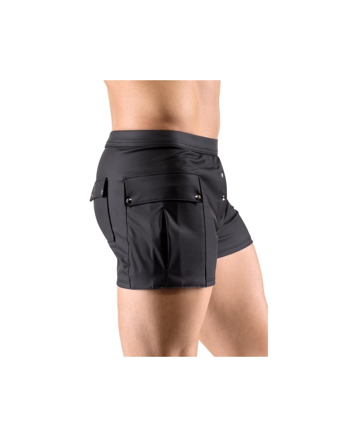 Close-fitting shorts from NEK in a black matte look with contrasting red stripes. Each side with a transparent fine mesh insert, flap pocket on the left leg. Pouch with underlaid zip. Soft, stretchy and with an elastic covered waistband for maximum comfort.