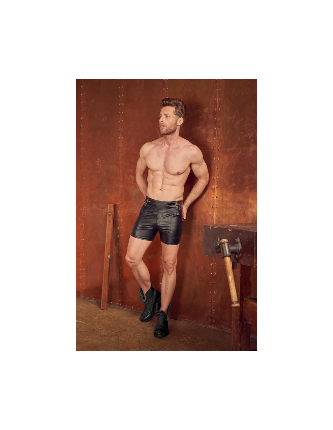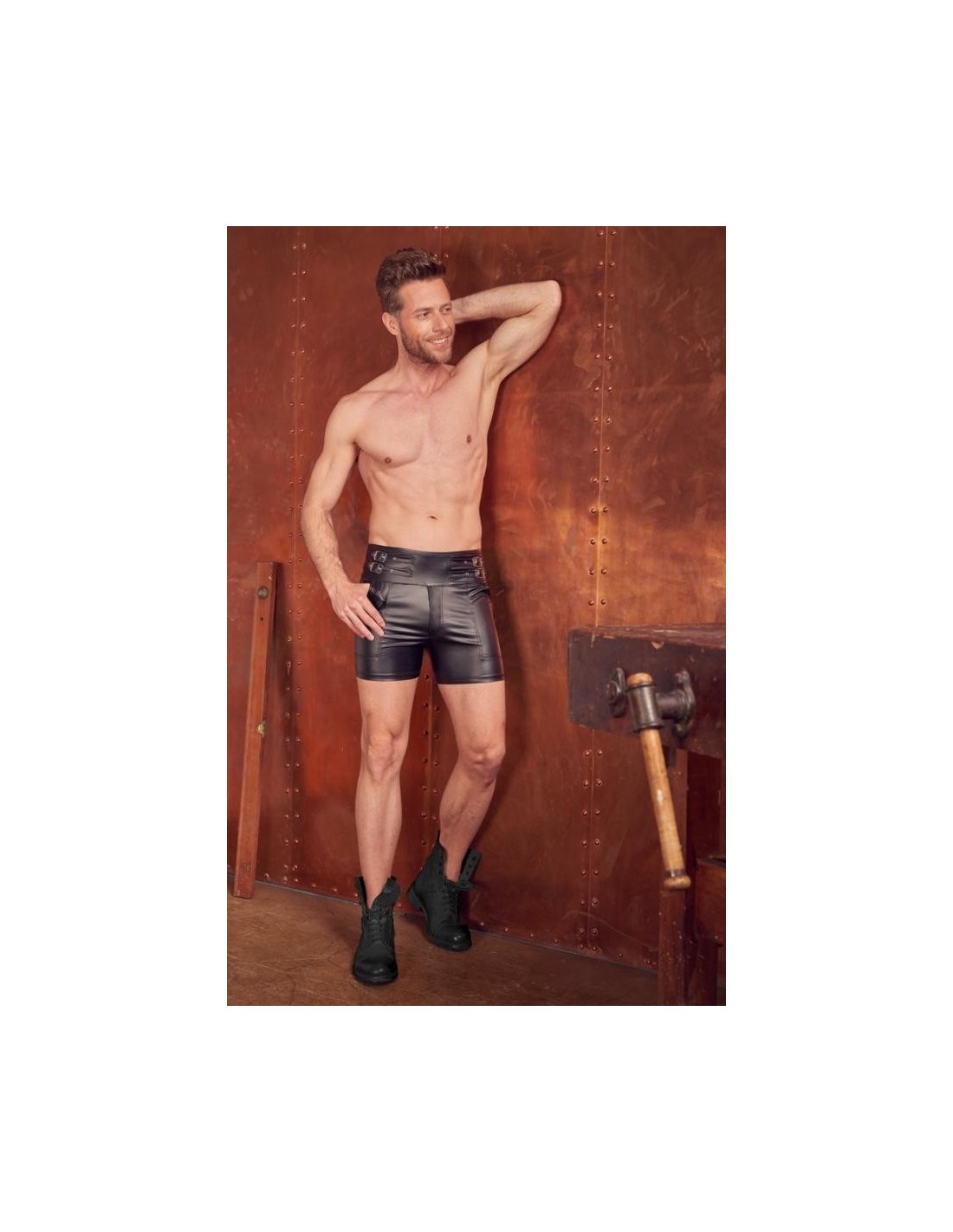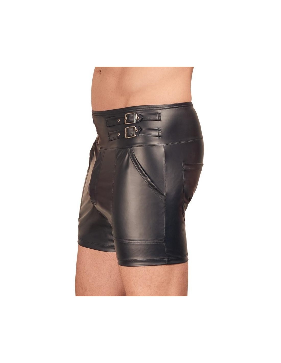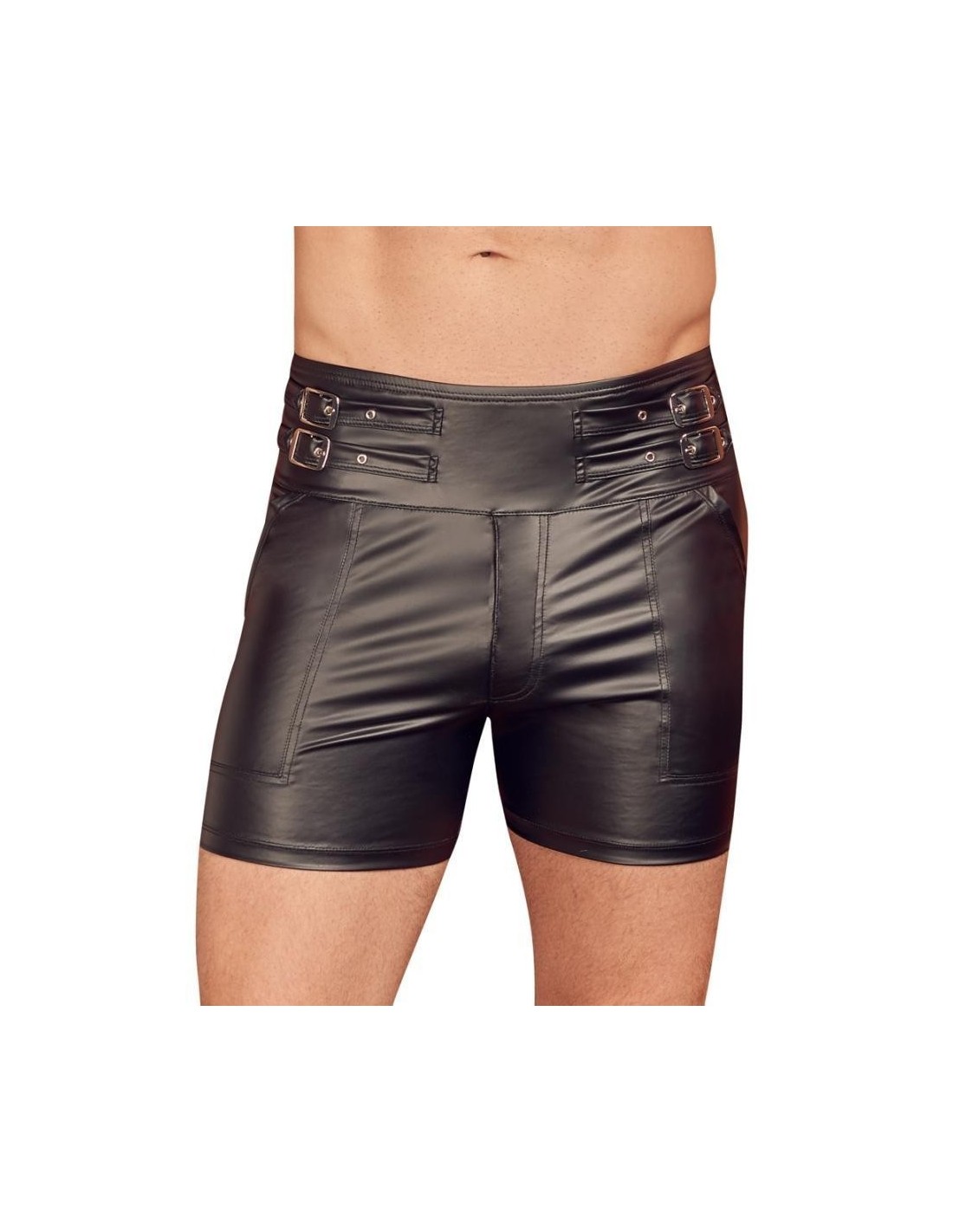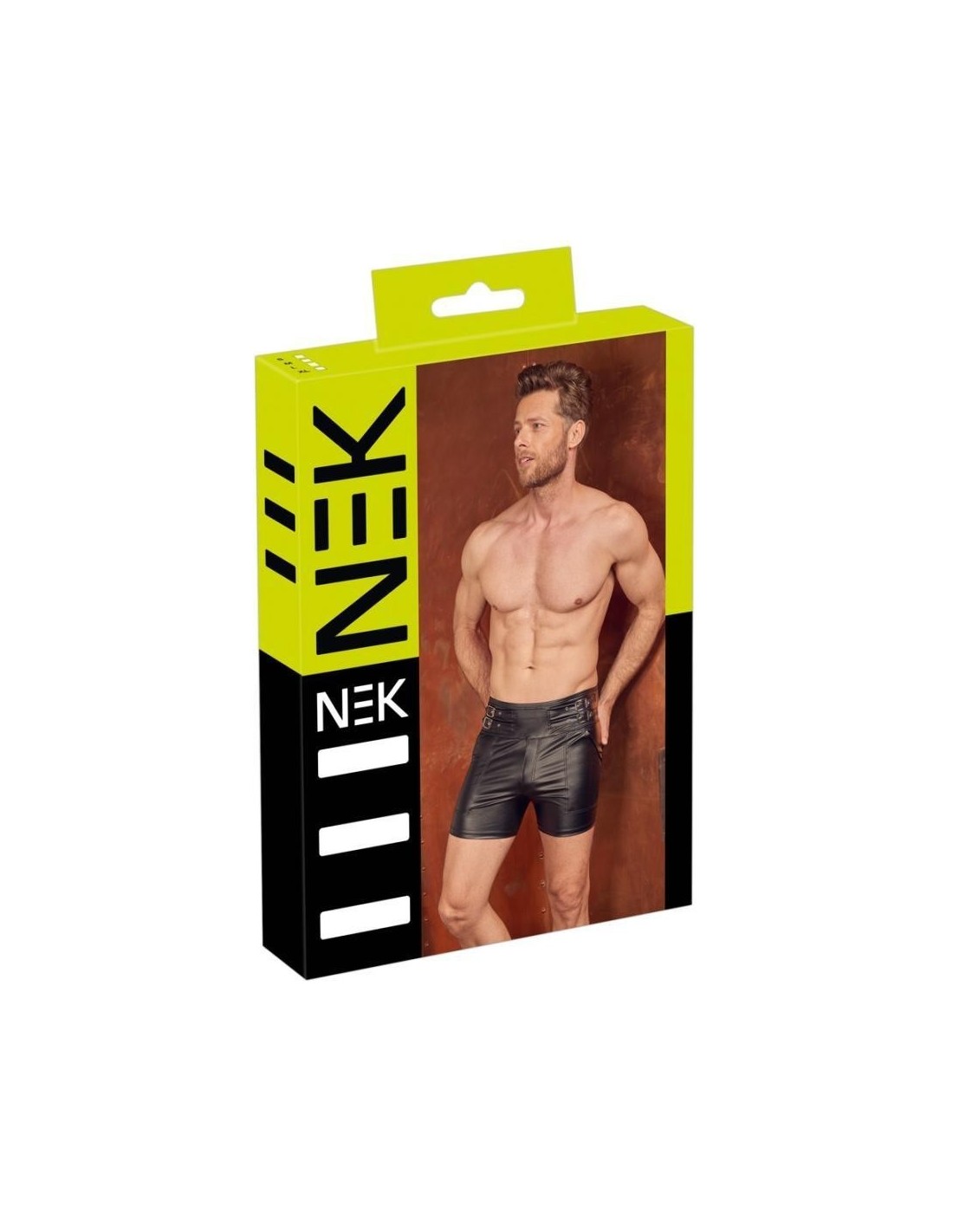 Close-fitting shorts from NEK in a black matte look with contrasting red stripes. Each side with a transparent fine mesh insert, flap pocket on the left leg. Pouch with underlaid zip. Soft, stretchy and with an elastic covered waistband for maximum comfort.