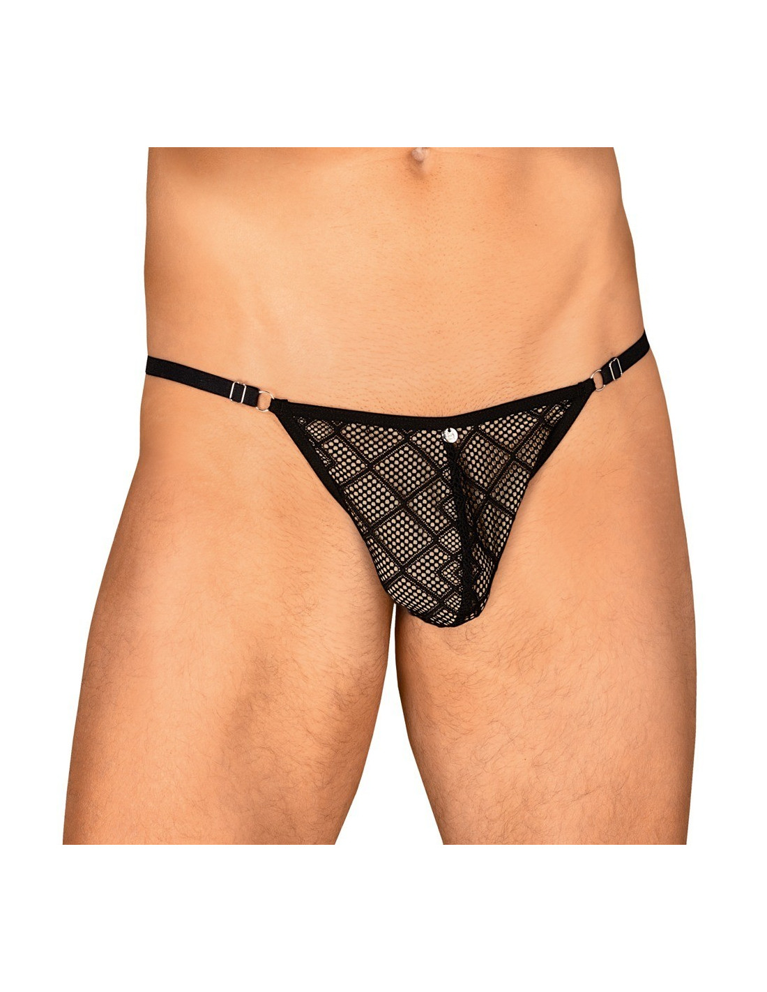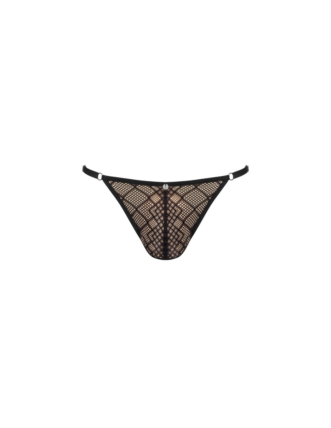 Perizoma nero Severio di Obsessive in semitrasparenza a fantasia stravagante. Morbido ed elasticizzato per un comfort totale. Comoda fascia elastica in vita con un piccolo elemento metallico sul davanti e regolabile per adattarsi.