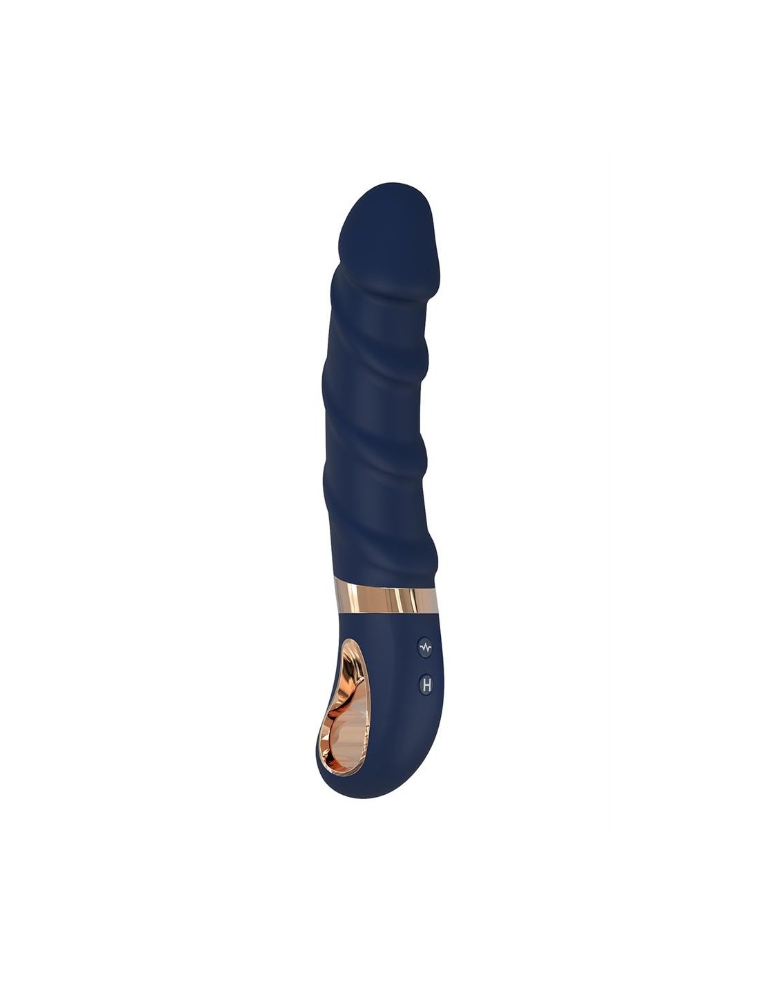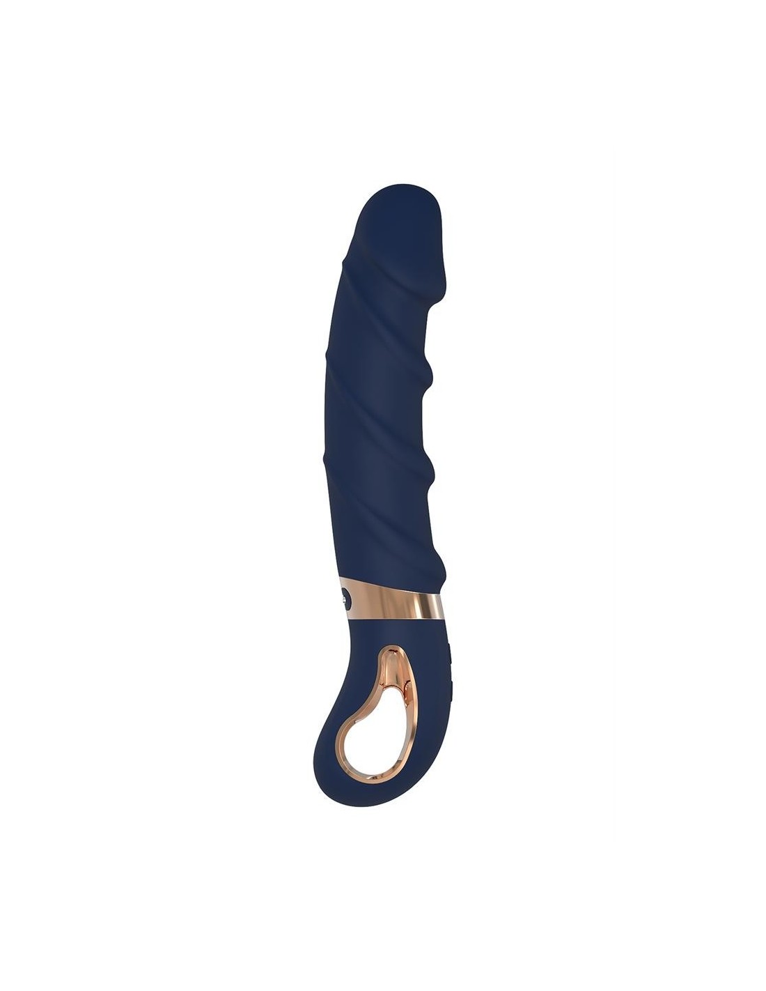 Fully in style with the other Goddess Collection toys, Belenos is made of dark blue silicone with gold coloured details. The classic vibrator has a ring shaped handle with metal coating that makes it easy to grip and look luxurious. Made of Liquid Silicone, this vibrator is velvety soft to the touch. Belenos has a soft tip and a flexible, curved shaft that is perfect for G-spot stimulation with stimulating ridges winding around it. With its powerful motor this vibrator is sure to deliver strong vibrations and with 7 vibration rhythms and 3 speeds there’s a perfect vibration for every taste. To make things even more pleasant, Belenos has a heating function, so the shaft will feel nice and warm like body temperature. It’s 100% waterproof so this vibrator can be used in the shower or bath tub. A magnetic USB-cable for recharging is included. Charging duration 3 hours. Usage duration 60 minutes at the highest speed or 120 minutes at the lowest speed. Body safe, free of phthalates and latex.  ,