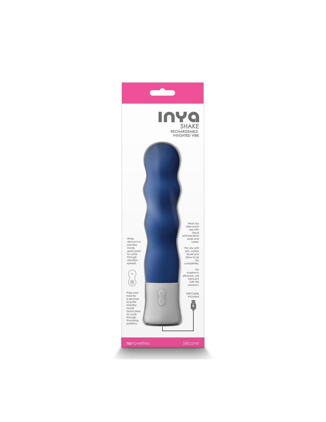Grab a Shake by INYA and hang on. Innovative technology creates a powerful rumbling and thumping sensation. Made of soft silicone and weighted for erotic pressure, this rechargeable vibe will rock your world! Multi-speed (8 speeds) and multi-function (8 functions).