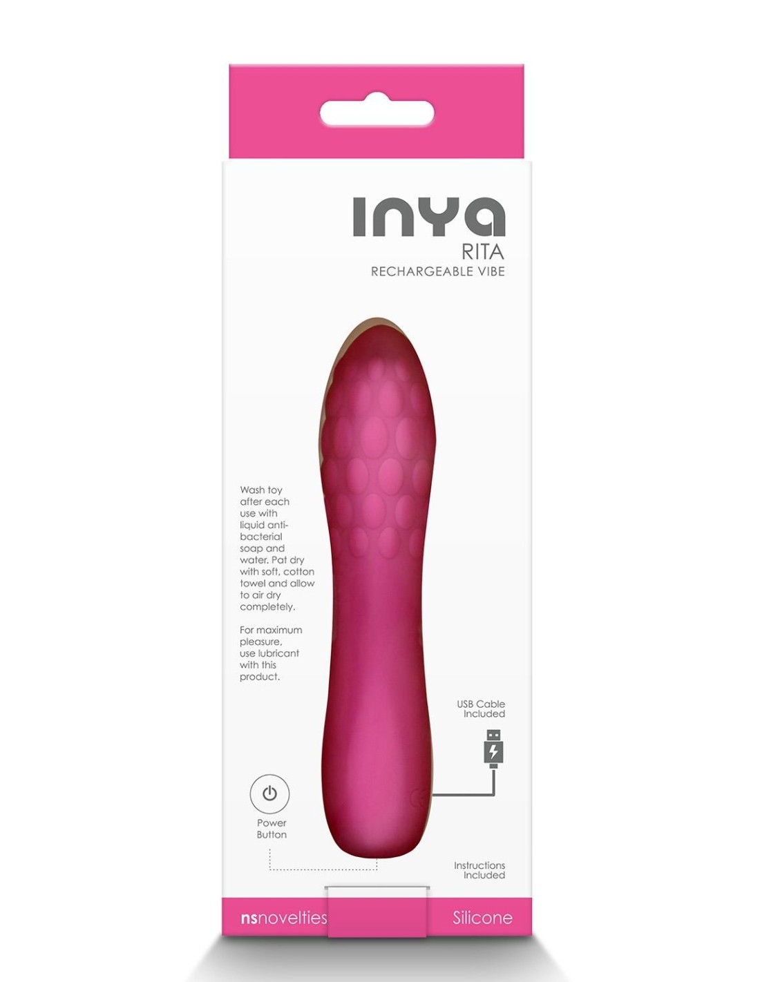 Trendy and compact, Rita by INYA is discreet, rechargeable, and travel friendly. Featuring a stimulating textured design made of platinum grade silicone, Rita has 10 exhilarating settings. Water resistant and suitable with all lubricants.