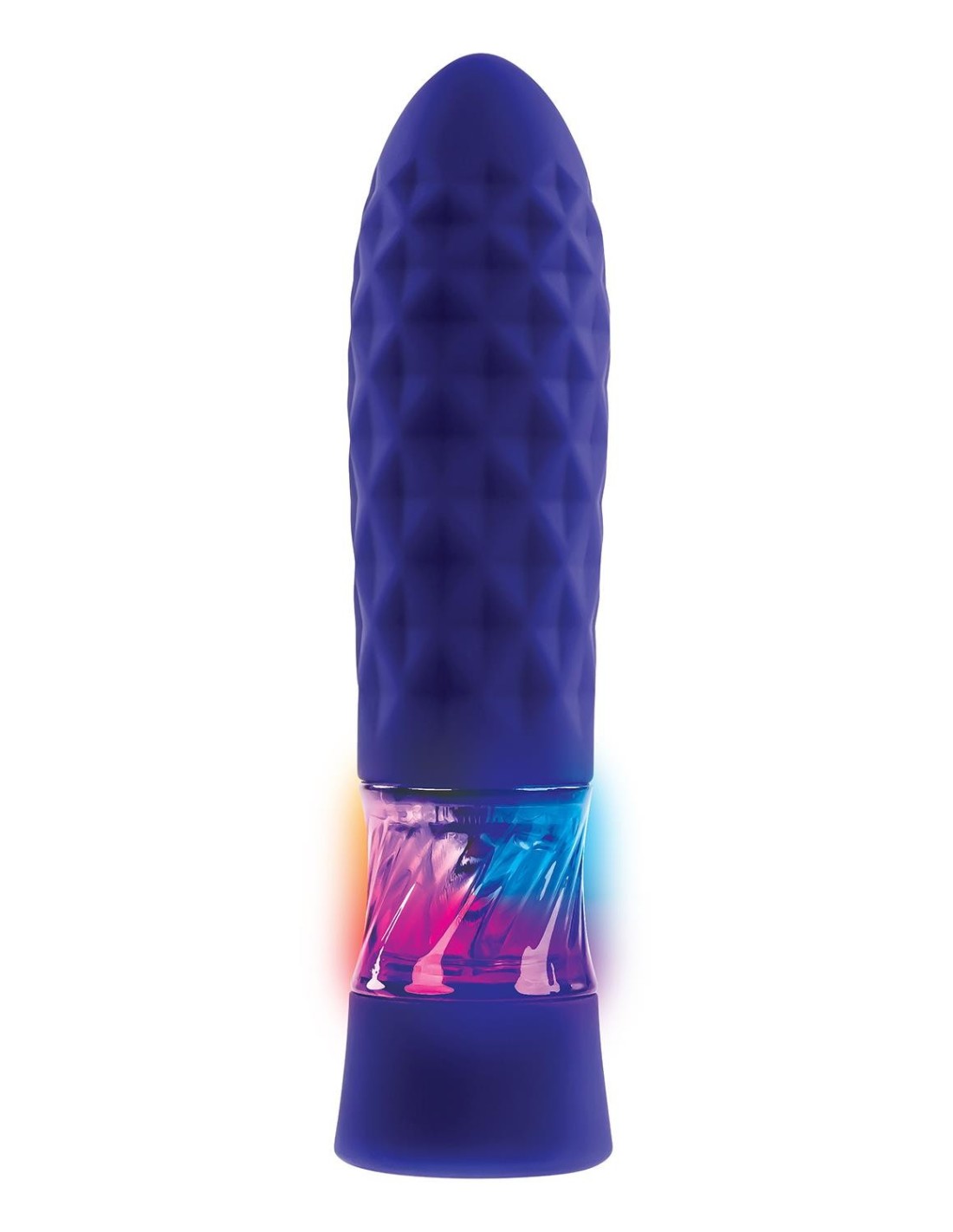Let your love light shine with this powerful light-up vibrating bullet! At almost five inches long with a diamond-shaped textured shaft for better grip and extra tickle, this gently swelling mini-vibe illuminates like a disco dance floor in the palm of your hand! Let the robust 8-speed motor drive your big O right over the top with colorful dynamic flair and an easy to use 1-button control. Take your pleasure party into the bath or shower since it’s completely water submersible and recharge via magnetic USB. Easy to clean and latex free.