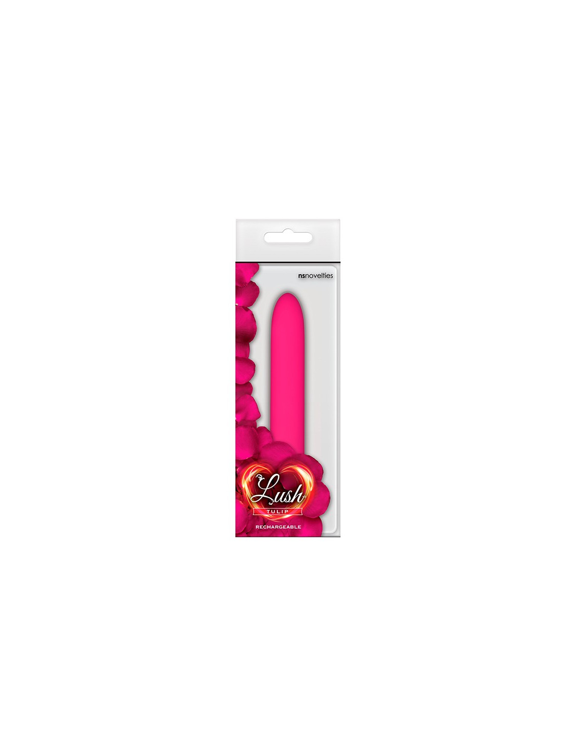 Tulip by Lush. A slim rechargeable vibrator (5.5 inc / 14 cm) that delivers explosive vibrations. With 7 speeds &, functions. Velvet touch ABS. USB charging cable included. Water-resistant and suitable with all lubricants.