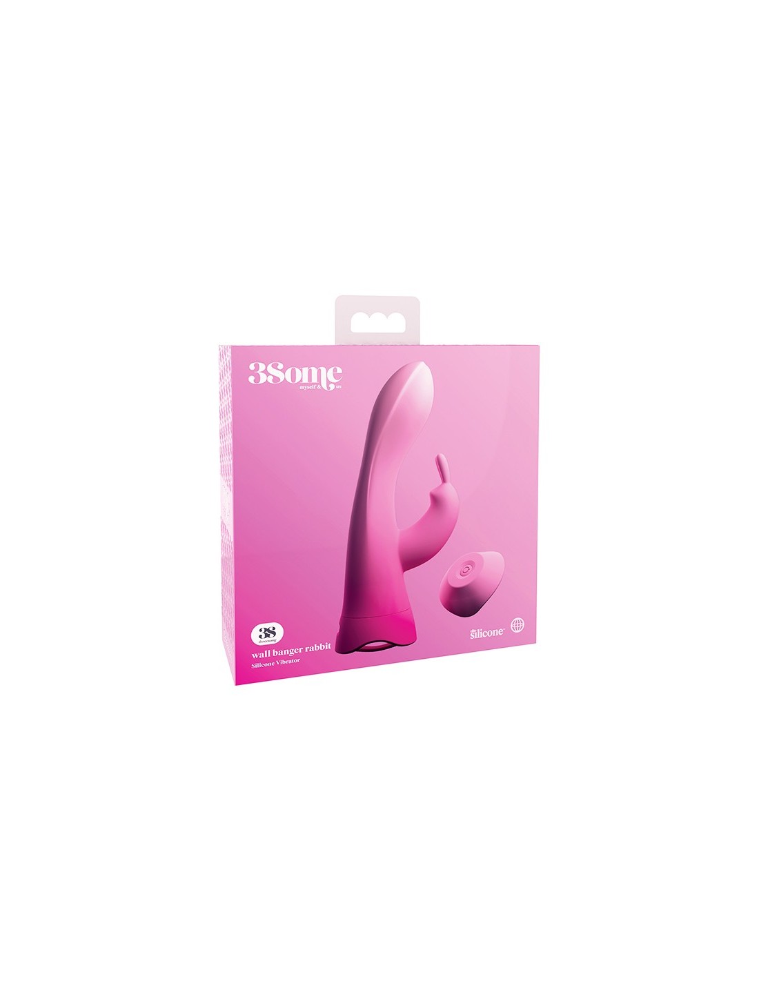 3Some is a premier collection for pleasure aficionados who crave excitement, fulfilment and sexy self-indulgence. The 3Some collection puts the fun in function with clever intimate items that offer multiple ways to enjoy triple-decker sensations and three times the enjoyment.Wonderfully diverse, Wall Banger Rabbit can be controlled with or without the magnetic wireless remote depending on your mood. Easily attaches to the base because it is magnetic.Handy and hands-free, Wall Banger Rabbit can be used with or without the silicone suction cup, allowing for perfect positioning. Plus, the suction cup creates a waterproof seal so you can frolic in the bath or shower.\u00A0You\u2019re in control!The positioning strap, cleverly hidden under the magnetic remote, allows you to pinpoint your pleasure while ensuring you never lose grip when the action heats up.\u00A0Multifunction duo vibrator. Two super-strong motors. Iconic rabbit style. Can be controlled with or without the wireless remote. 7 Functions and 3 speeds. Powerful suction cup that creates a waterproof seal. Rechargeable, USB charging cord included. Remote requires 1x CR1620 battery, included. Operating Instructions:\u00A0Simply press and hold the power button on either the vibrator or wireless remote for 3 seconds to turn on. Press the power button again to cycle through the 7 levels and 3 speeds of vibration. To turn off, simply press and hold the power button for 3 seconds.