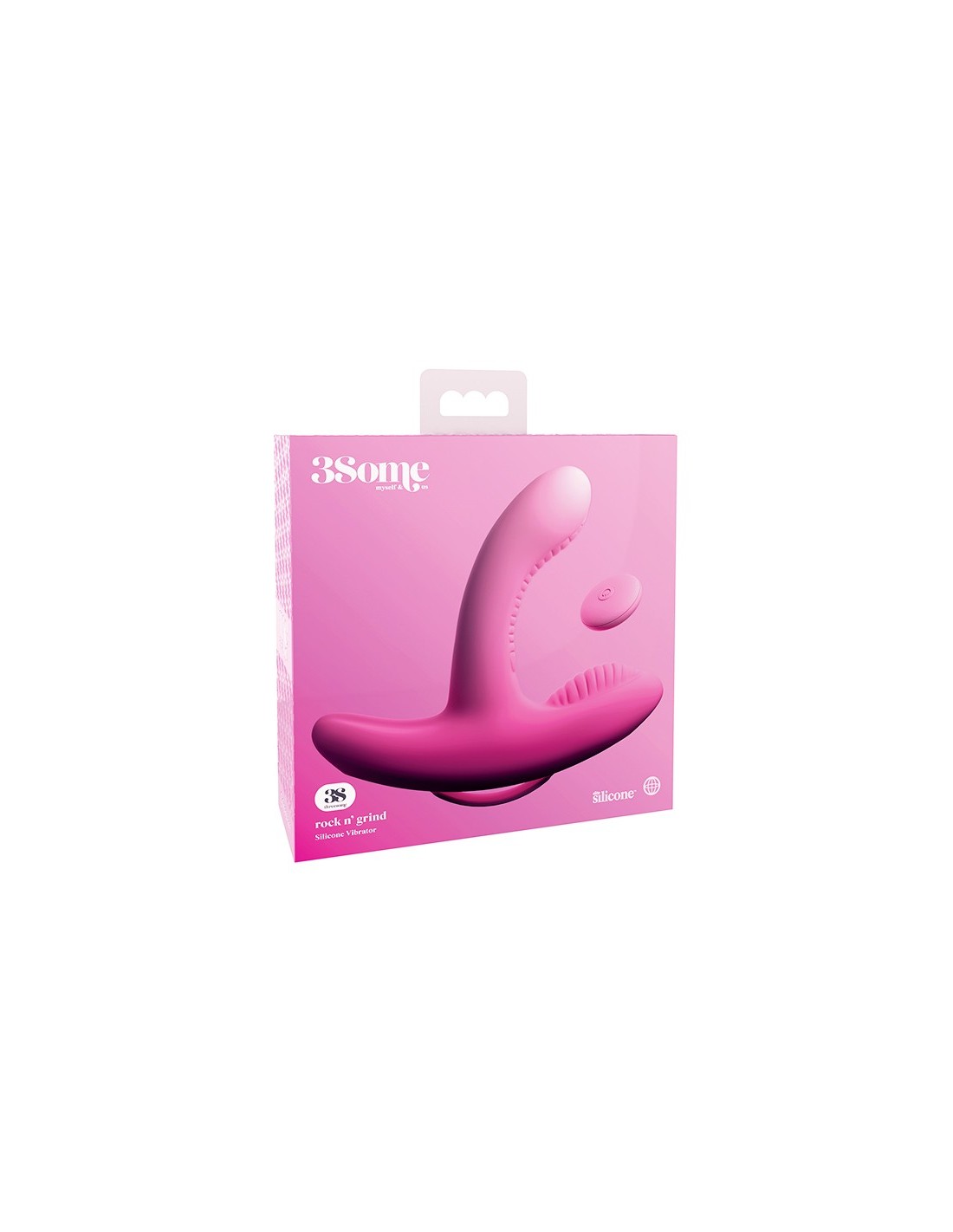 3Some is a premier collection for pleasure aficionados who crave excitement, fulfilment, and sexy self-indulgence. The 3Some collection puts the fun in function with clever intimate items that offer multiple ways to enjoy triple-decker sensations and three times the enjoyment!Double delight begins with the pleasure ribs that titillate the clitoris and G-spot with extra sensations. The Rock \u2018n Grind is gently curved to match intimate contours, while delivering arousing vibrations and sensual stimulation.You\u2019re in command! The positioning strap underneath allows you to control the rocking, grinding and movement. Multifunctional vibrator with pleasure ribs that titillate the clitoris and G-spot with extra sensations. Gently curved to match intimate contours, while delivering arousing vibrations and sensual stimulation. Two super-strong motors. 7 Functions, 3 speeds. Can be controlled with or without the wireless remote. Rechargeable, USB charging cord included. Battery remote included. Splashproof.