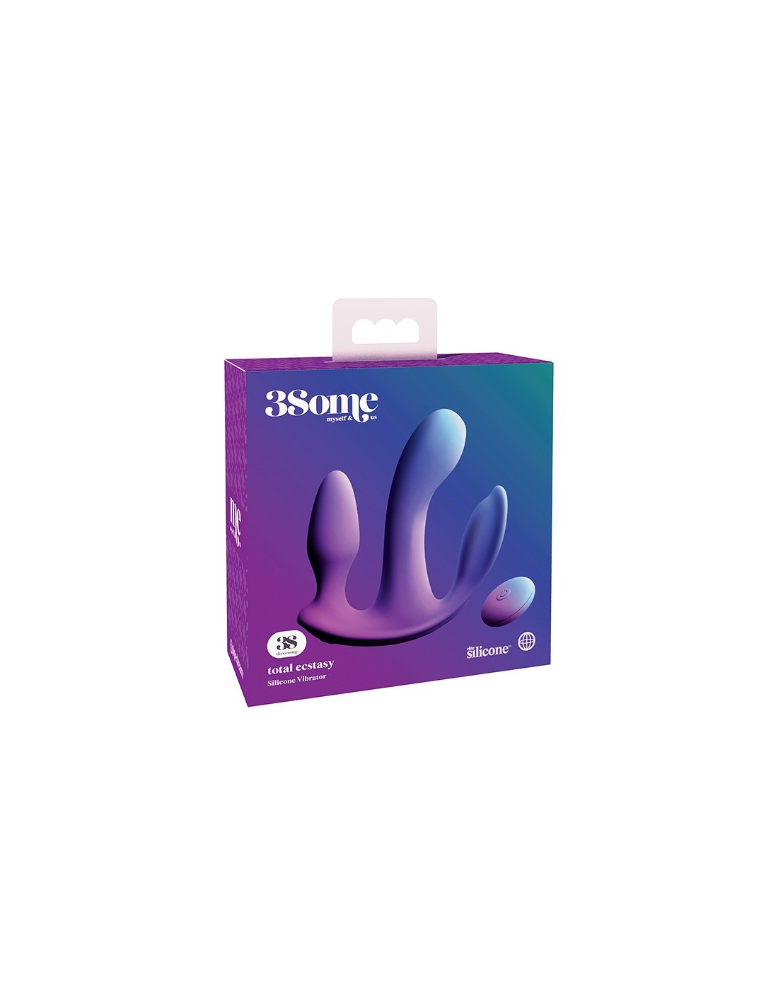3Some is a premier collection for pleasure aficionados who crave excitement, fulfilment, and sexy self-indulgence. The 3Some collection puts the fun in function with clever intimate items that offer multiple ways to enjoy triple-decker sensations and three times the enjoyment!Triple titillation begins with the pleasure bump for extra clitoral arousal and a curved G-spot massager, then continues on to the delicate anal plug with a tender, tapered tip. Awaken all your senses with the three powerful motors for triple satisfaction. Use the positioning strap to hug Total Ecstasy close, rock and roll, or take a pleasure joyride! Triple titillation. Pleasure bump for extra clitoral arousal and a curved G-spot massager. Anal plug with a tender, tapered tip. Three super-strong motors. 7 Functions, 3 speeds.Can be controlled with or without the wireless remote. Rechargeable, USB charging cord included. Remote requires 1x CR1620 battery, included. Splashproof.
