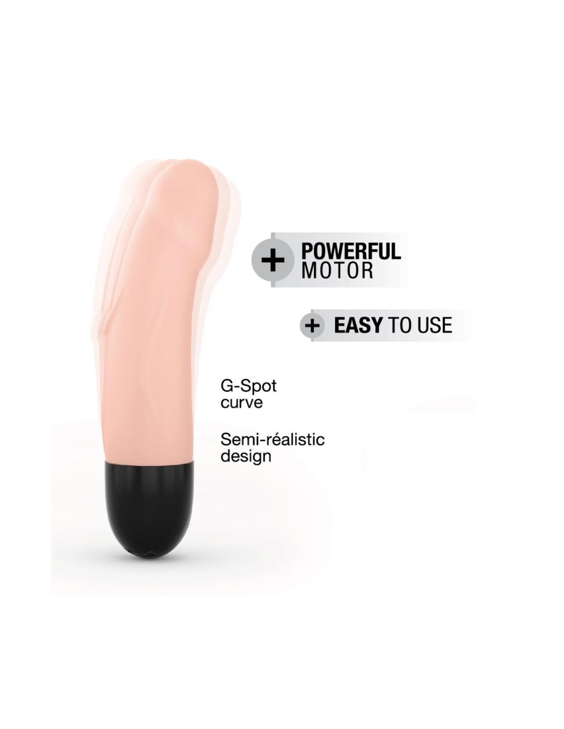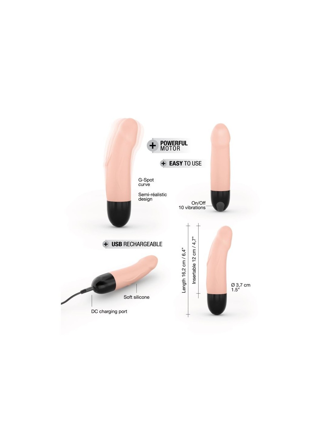 Un design semi-realistico per dare sfogo alle vostre fantasie più profonde. Un orgasmo intenso e profondo! Vibratore Ricaricabile Silicone morbido + ABS 10 modalità di vibrazione Autonomia: 1,5 ore Tempo di ricarica: 2h Senza ftalati 100% silicone Splashproof Lunghezza 16 cm Diametro 3,4 cm Colore: Carne