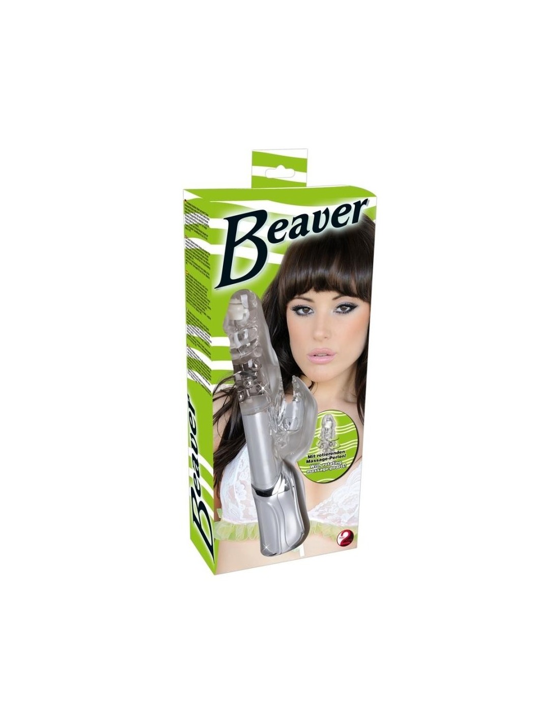 Vibratore con cappella rotante, sfere metalliche che girano nel gambo e biber vibrante con punta muso a per il clitoride. Ca. 24,5 cm di lunghezza, O̸ 4 cm. Rotazione regolabile separatamente a sei livelli, vibrazione a sette livelli. Transparent. Materiale: TPE, ABS.