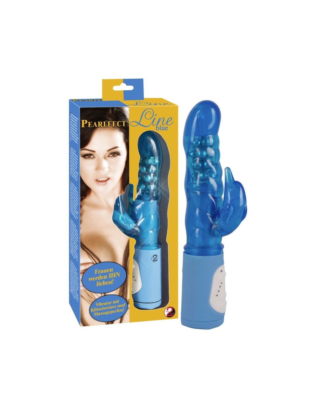 Blue-transparent vibrator with dolphin-shaped clit tickler. 7 vibration rhythms and 7 rotation rhythms, with 4 speeds each can be adjusted separately. Total length 24.5 cm, insertable depth approx. 11 cm, O̸ 3.8 cm. Material: TPE, ABS, phthalate-free according to EU Regulation REACH. (Please order batteries separately: 4 x Micro/AAA)