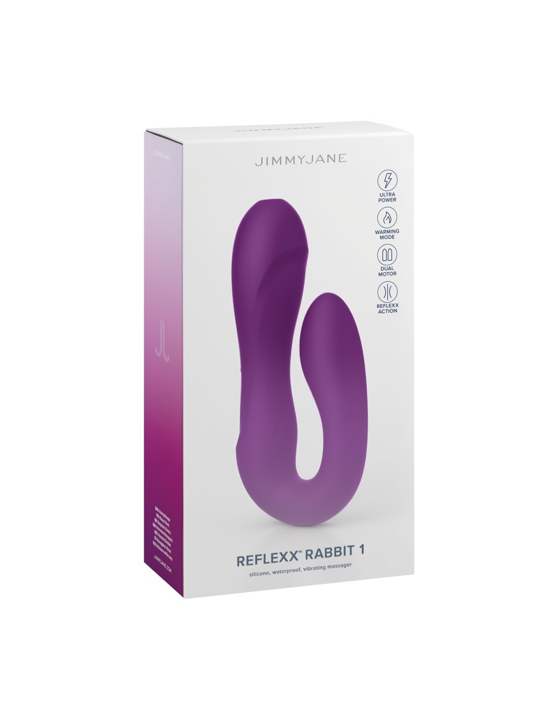 Vibratore doppio flessibile Reflexx Rabbit 1 di JimmyJane per la doppia stimolazione della vagina, della zona G e del clitoride. Con il suo design a forma di U, è flessibile ed elastico e si adatta perfettamente al corpo e ai movimenti durante le coccole. È così flessibile da fornire la giusta pressione in modo che le potenti vibrazioni possano essere percepite intensamente sia all'interno che all'esterno.