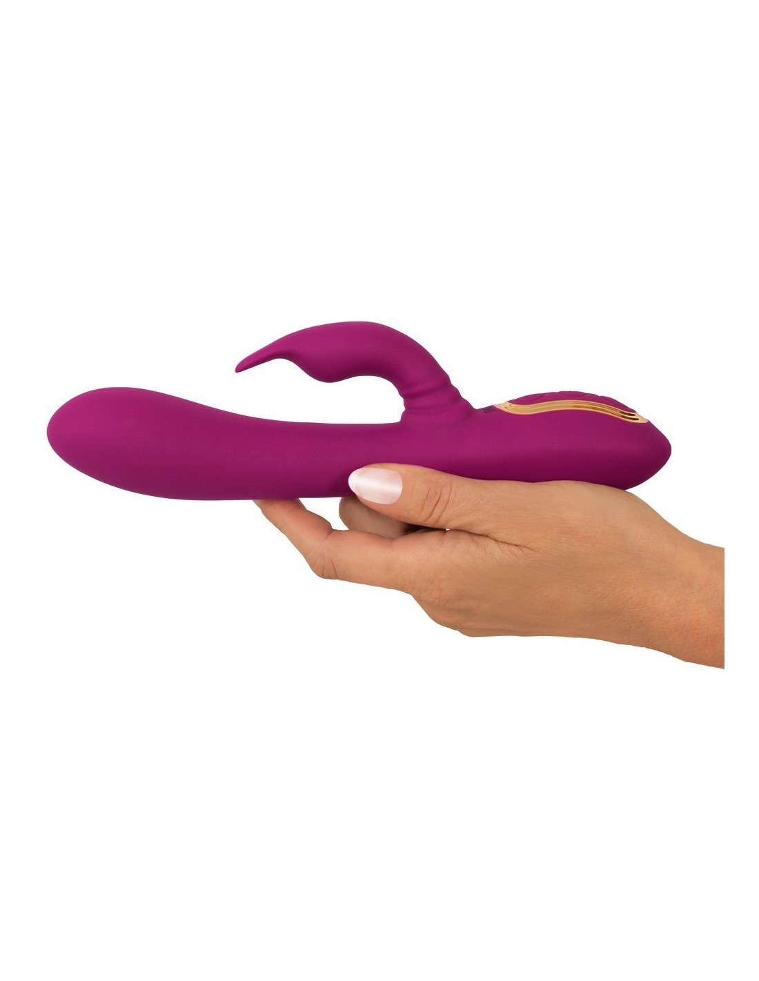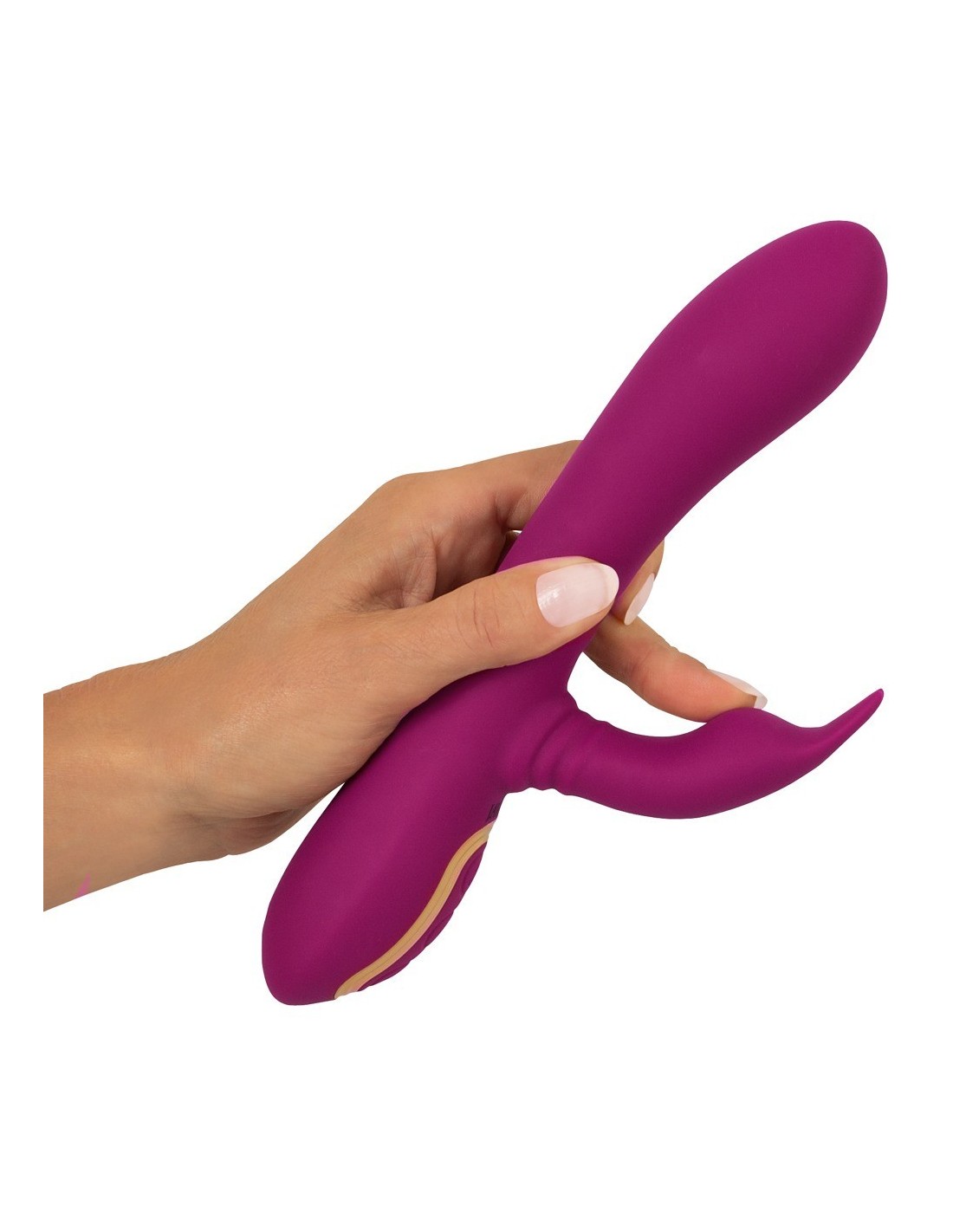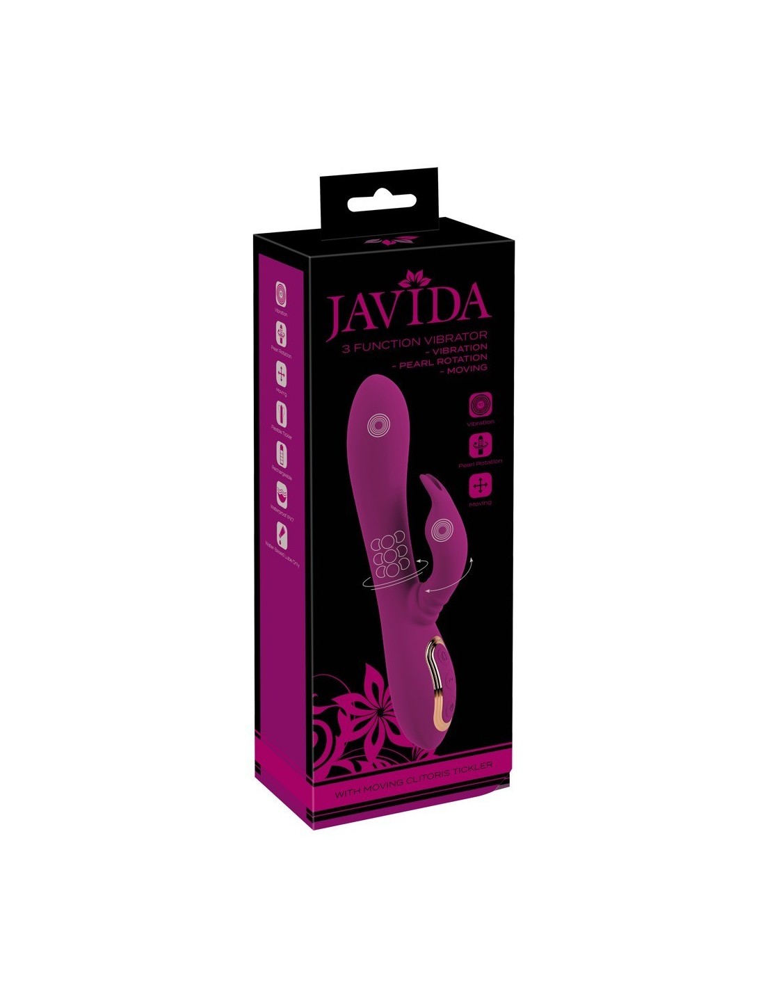 Il pratico vibratore a 3 funzioni di Javida coccola l'interno e l'esterno allo stesso tempo! Da un lato, nella vagina con vibrazioni intense e perle massaggianti rotanti nell'asta. Dall'altro, il clitoride con il coniglietto vibrante che si muove dinamicamente avanti e indietro (Moving). Doppia stimolazione per una doppia potenza dell'orgasmo!