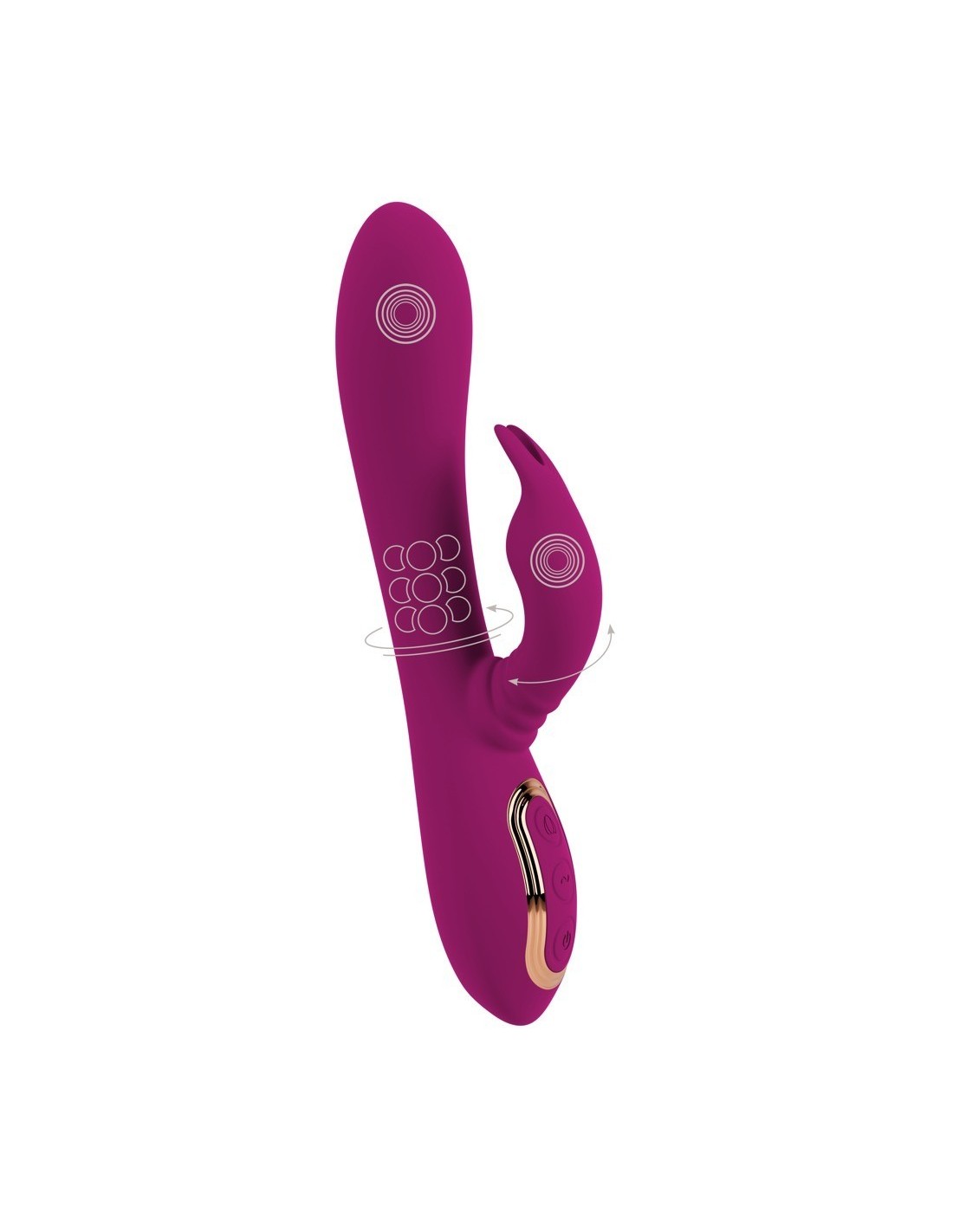 Per una sofisticata stimolazione sincrona, sono disponibili 10 modalità di vibrazione nella punta dell'asta e nello stimolatore del clitoride per un piacere lussurioso. La rotazione delle perle massaggianti nella parte inferiore dell'asta è combinata simultaneamente con la funzione di movimento dello stimolatore del clitoride e può essere controllata in 5 velocità. Il tutto comodamente premendo un pulsante direttamente sul toy. Non meno di 3 potenti motori forniscono una potenza affidabile.