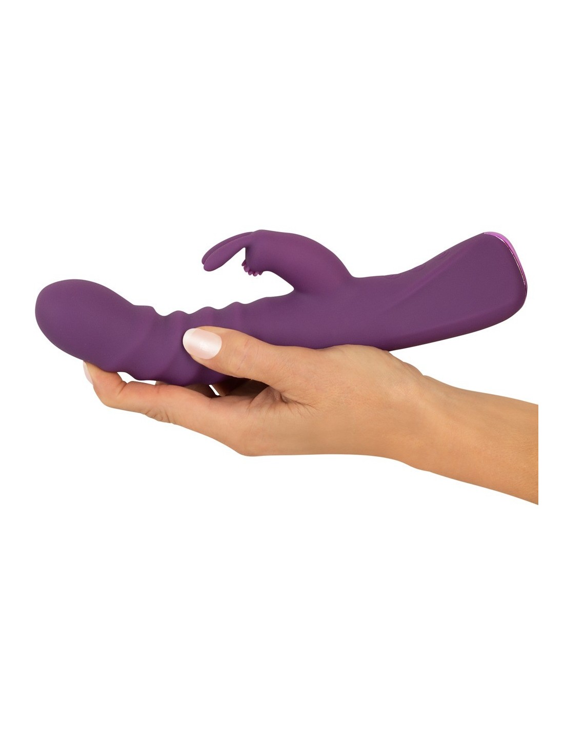 Il pratico vibratore rabbit a 2 funzioni di Javida con funzione di spinta coccola dentro e fuori allo stesso tempo! Il suo fusto scanalato a ripetizione con punta vibrante stimola la vagina in profondità. Allo stesso tempo, il soffice vibro-bunny punta al clitoride con piacere. Doppia potenza orgasmica con la semplice pressione di un pulsante!