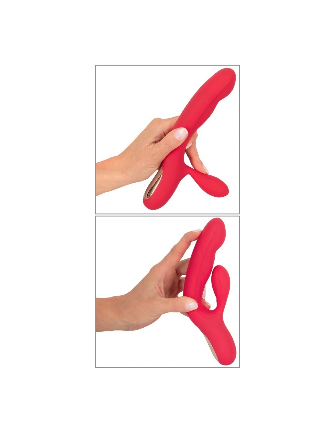 3 motori silenziosi e potenti garantiscono una potenza affidabile. Le vibrazioni combinate della testa e dello stimolatore clitorideo sono selezionabili in 10 modalità. La funzione di pulsazione (thumping) nell'albero curvo in 5 modalità. Entrambe le funzioni possono essere controllate separatamente premendo un pulsante direttamente sul toy.