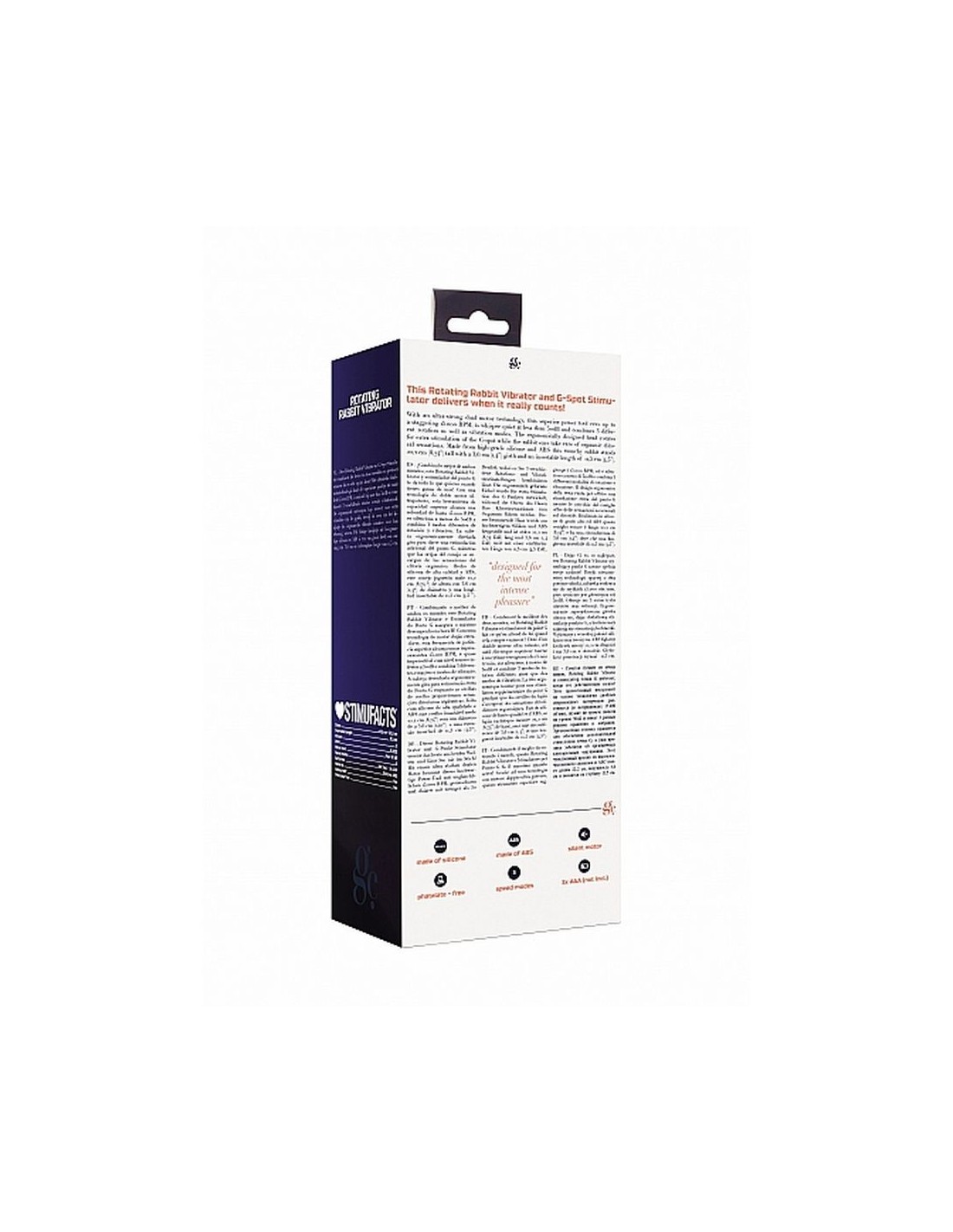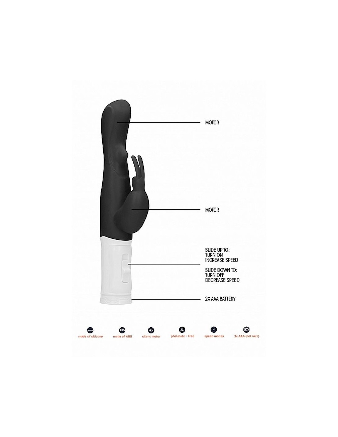 Questo operatore ti farà impazzire grazie al suo tocco leggero ma sicuro appena lo Combinando il meglio da entrambi i mondi, questo Rotating Rabbit Vibrator e Stimolatore per Punto-G fa il massimo quando serve! Grazie ad una tecnologia con motore doppio ultra-potente, questo strumento superiore raggiunge i 15.000 RPM, ed è silenzioso a meno di 50dB e combina 3 differenti modalità di rotazione e vibrazione. Il design ergonomico della testa ruota per offrire una stimolazione extra del punto-G mentre le orecchie del coniglio offre delle sensazioni eccezionali sul clitoride. Realizzato in silicone di grado alto ed ABS questo coniglio vorace è lungo 22,2 cm (8,74") e ha una circonferenza di 3,6 cm (1,4") oltre che una lunghezza inseribile di 11,5 cm (4,5"). Dimensioni imballaggio 26,10 x 11,20 x 7,50 cm Peso imballaggio 285 grammi Misure Prodotto 22,2 x 6,5 x 3,6 cm Peso Prodotto 175,00 grammi Diametro Prodotto 3,6 cm Lunghezza inseribile 11,5 cm Quantità Motori 2 Rotazioni 15000 RPM Rotazione Punta Vibrante 15000 RPM Modalità Velocità 3 Livello Rumore 50 dB Batterie Richieste 3 Tipo batterie AAA Batteria Inclusa No Resistente all'Acqua Sì Anti-schizzo Sì Privo di Ftalati Sì Materiale silicone, ABS