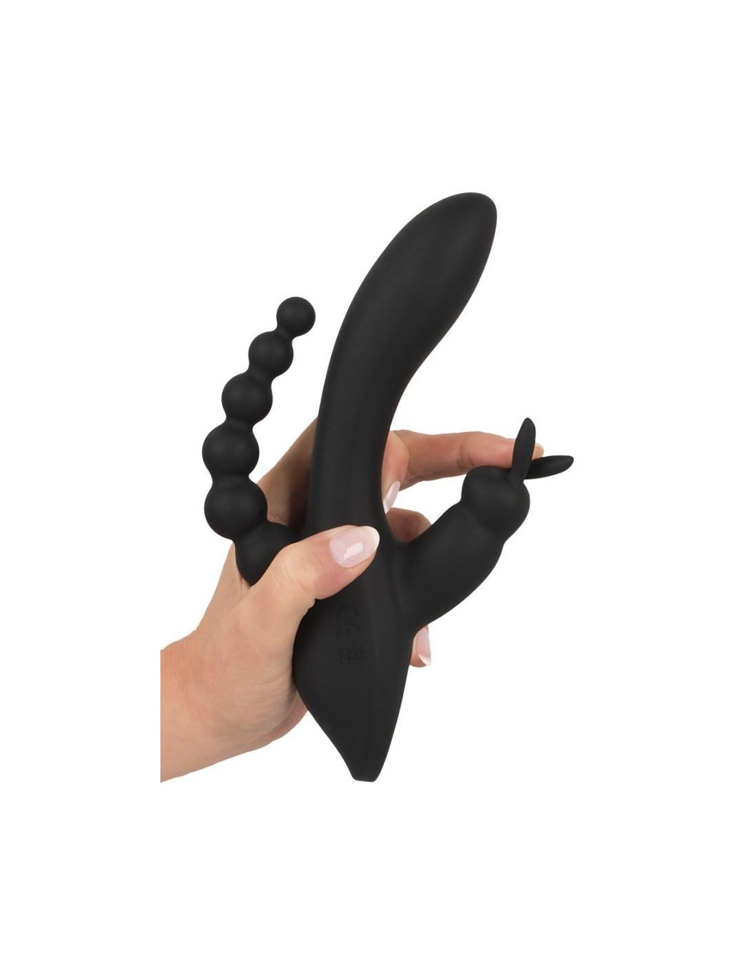 Vibratore con stimolatore clitorideo in design a coniglietto e stimolatore dell'ano in design a palla. 7 modalità di vibrazione nel fusto curvo con punta G-spot e 3 modalità di vibrazione nello stimolatore clitorideo possono essere comodamente controllate separatamente al tocco di un pulsante. Questo coccolatore a tutto tondo è coperto da una texture soft touch tutto intorno e fornisce una sensazione molto piacevole sulla pelle mentre si gioca e si coccola. Anche in ambienti umidi, perché il vibratore è impermeabile! Ricaricabile - cavo USB incluso.