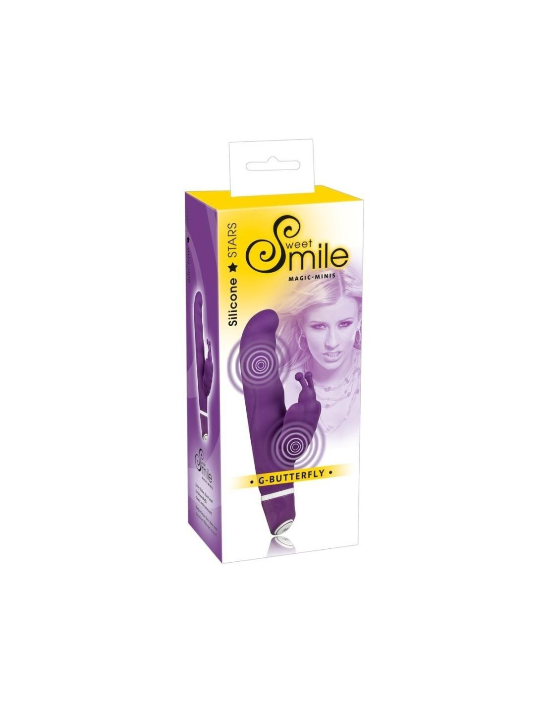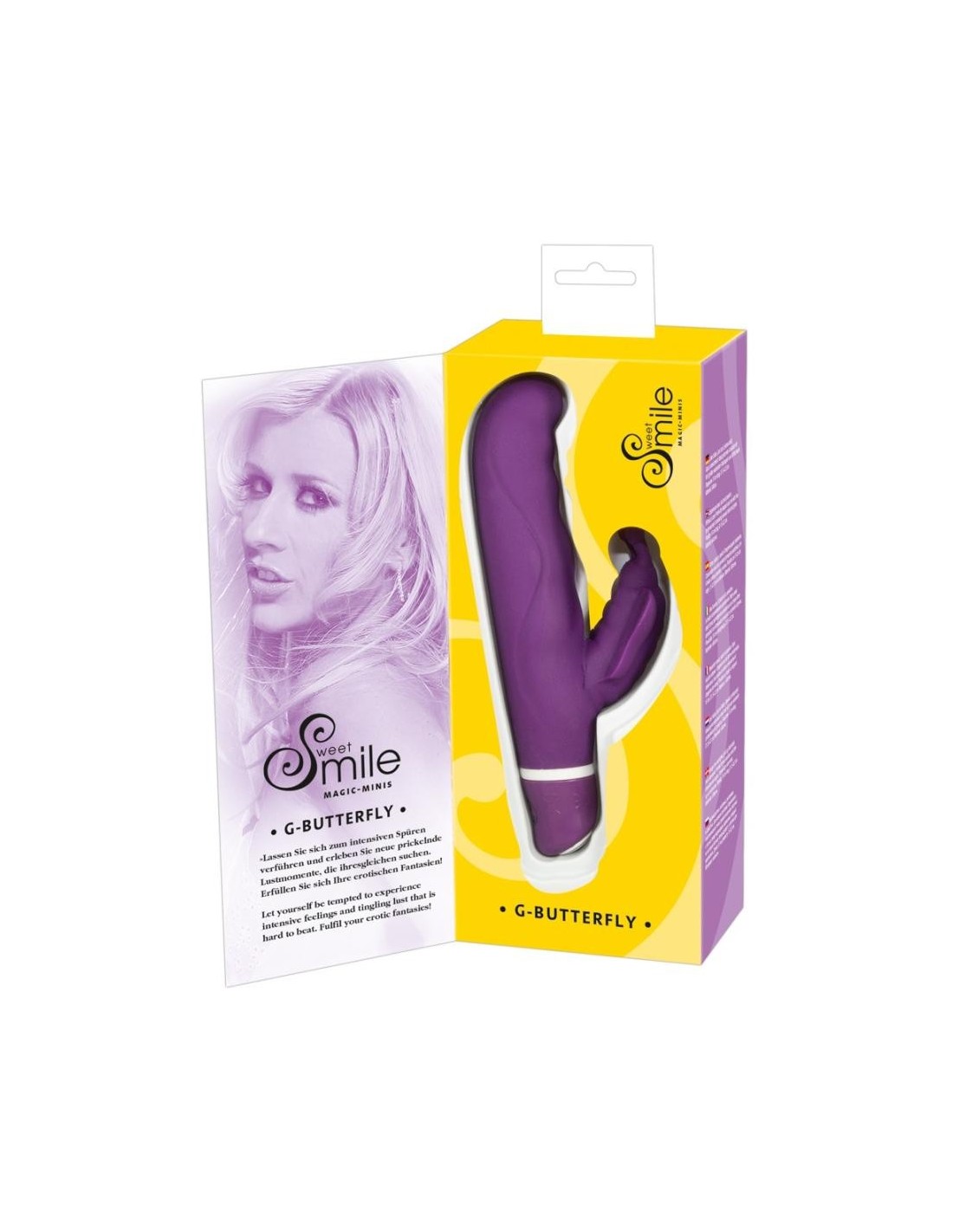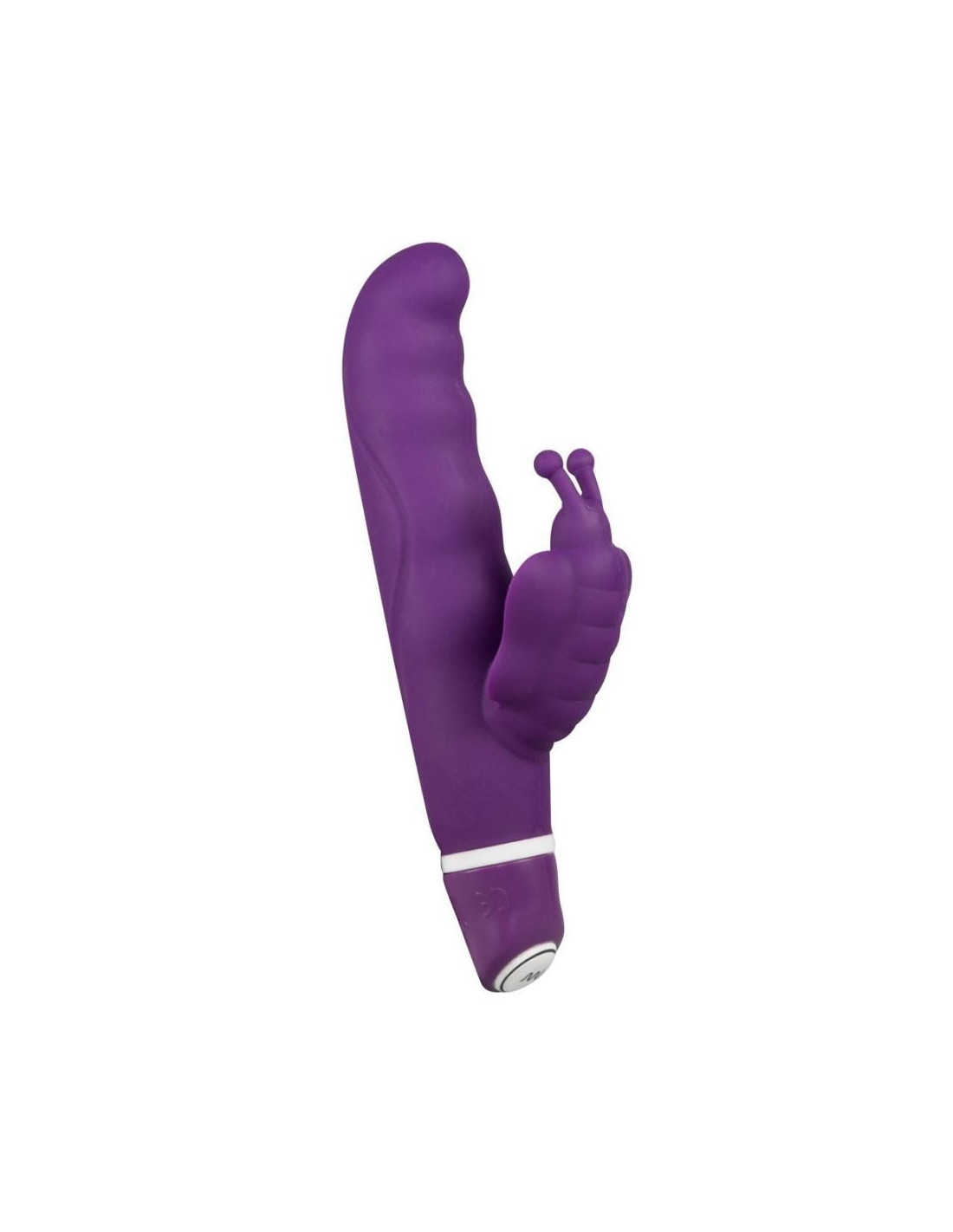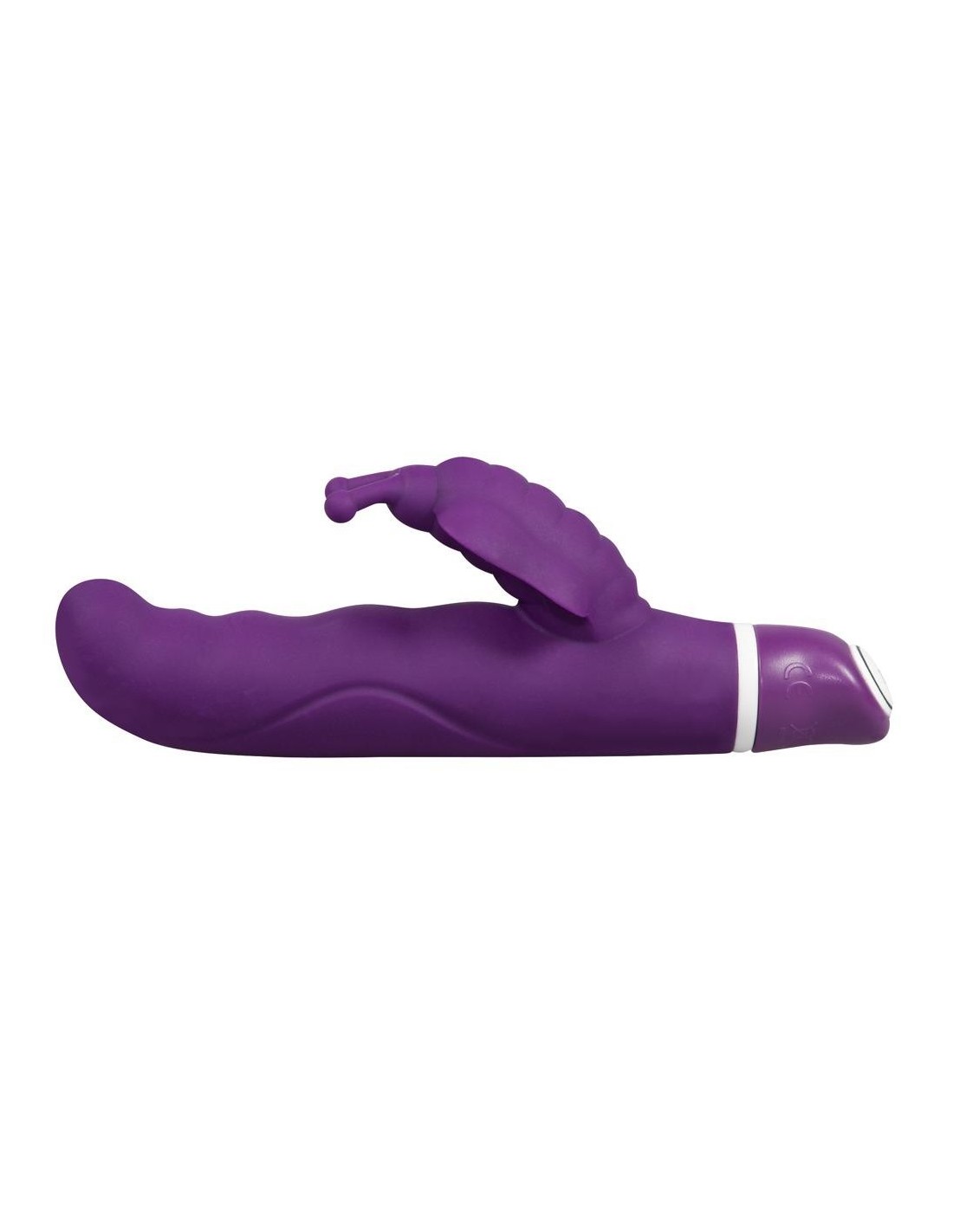Vibratore con braccio di stimolazione del clitoride a farfalla. Con due motori: uno nella punta del punto G e uno nello stimolo del clitoride. I 7 modi di vibrazione possono essere facilmente controllati con la semplice pressione di un pulsante.