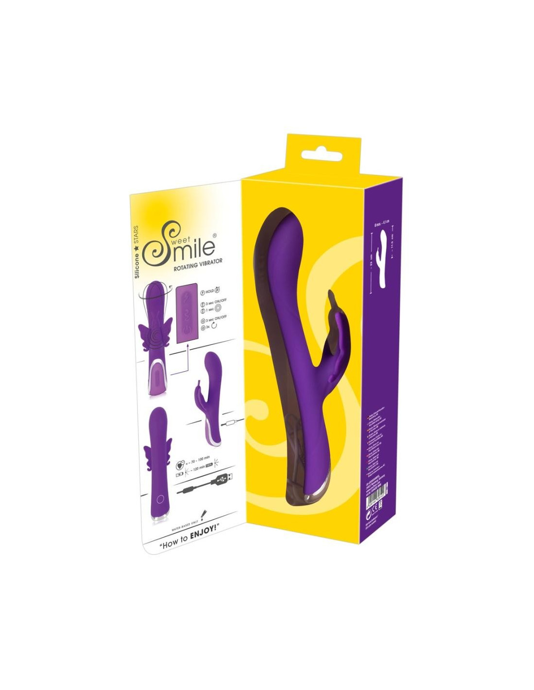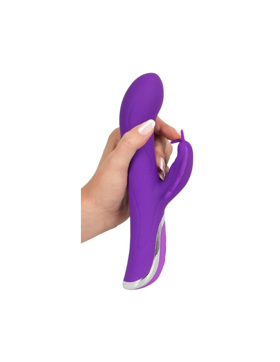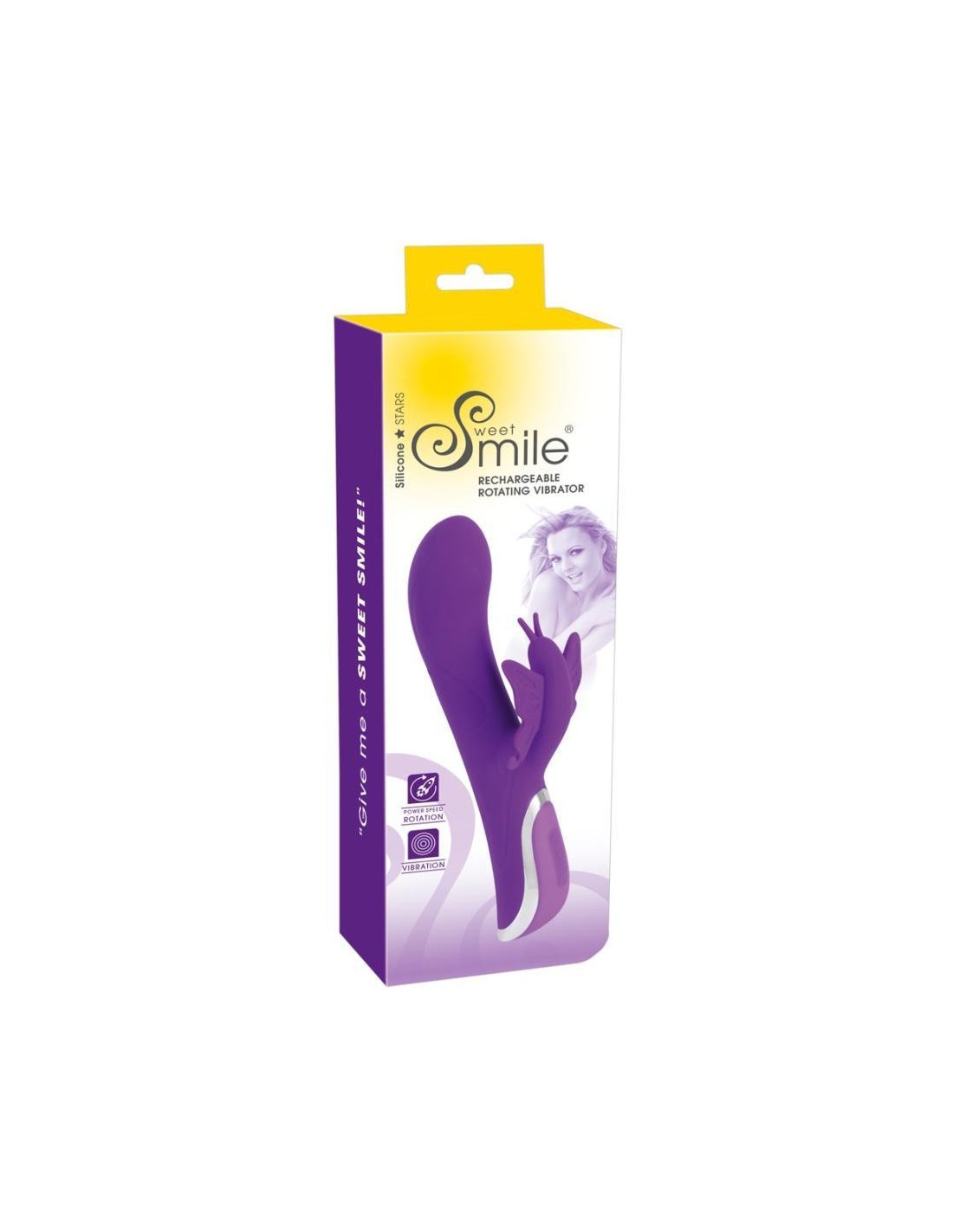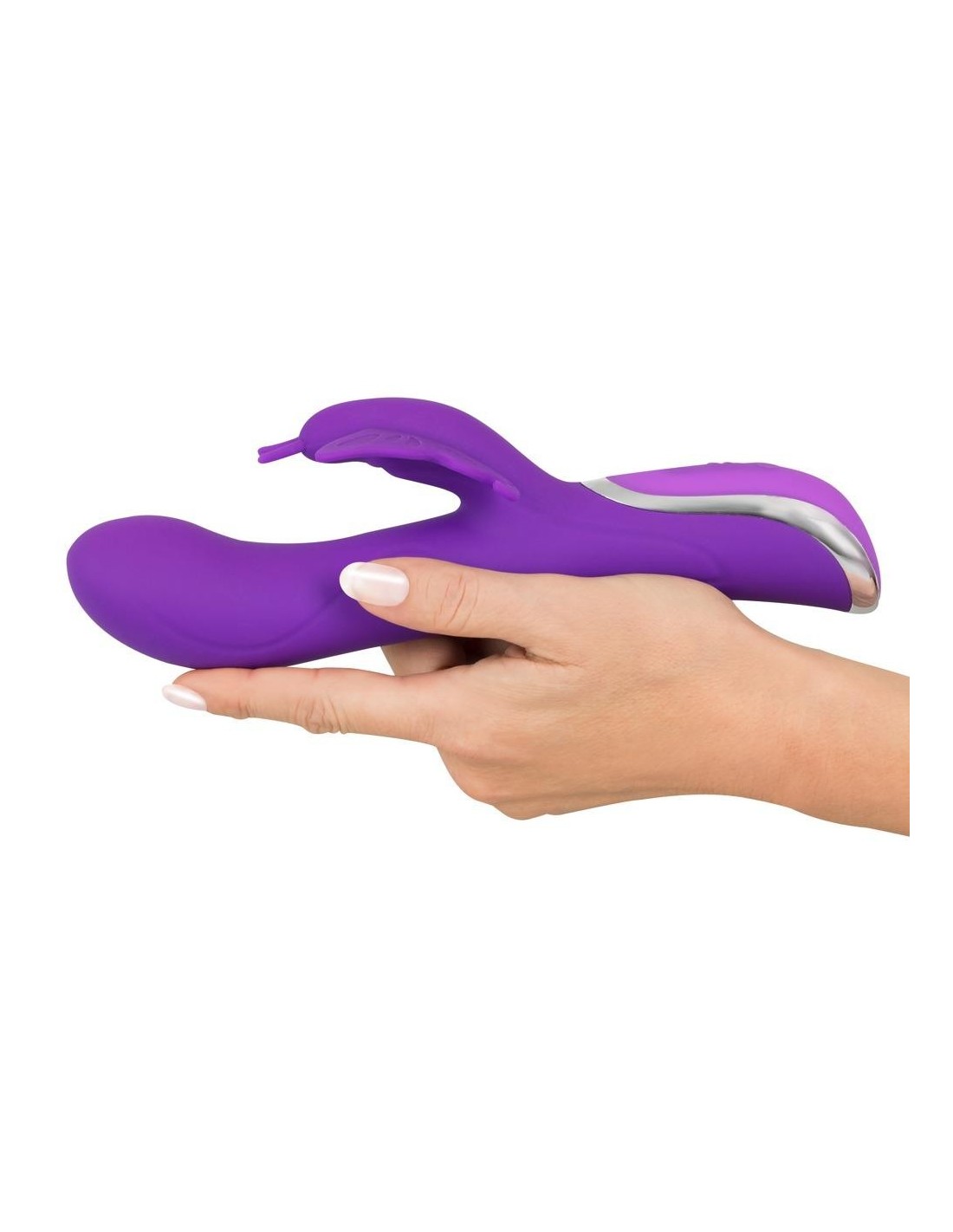 Vibratore Rabbit ricaricabile con albero leggermente curvo e farfalla come stimolatore clitorideo. 10 modalità di vibrazione nel braccio stimolatore clitorideo e 3 velocità di rotazione nella punta dell'asta. Controllabile separatamente. Con scanalature decorative di stimolazione.