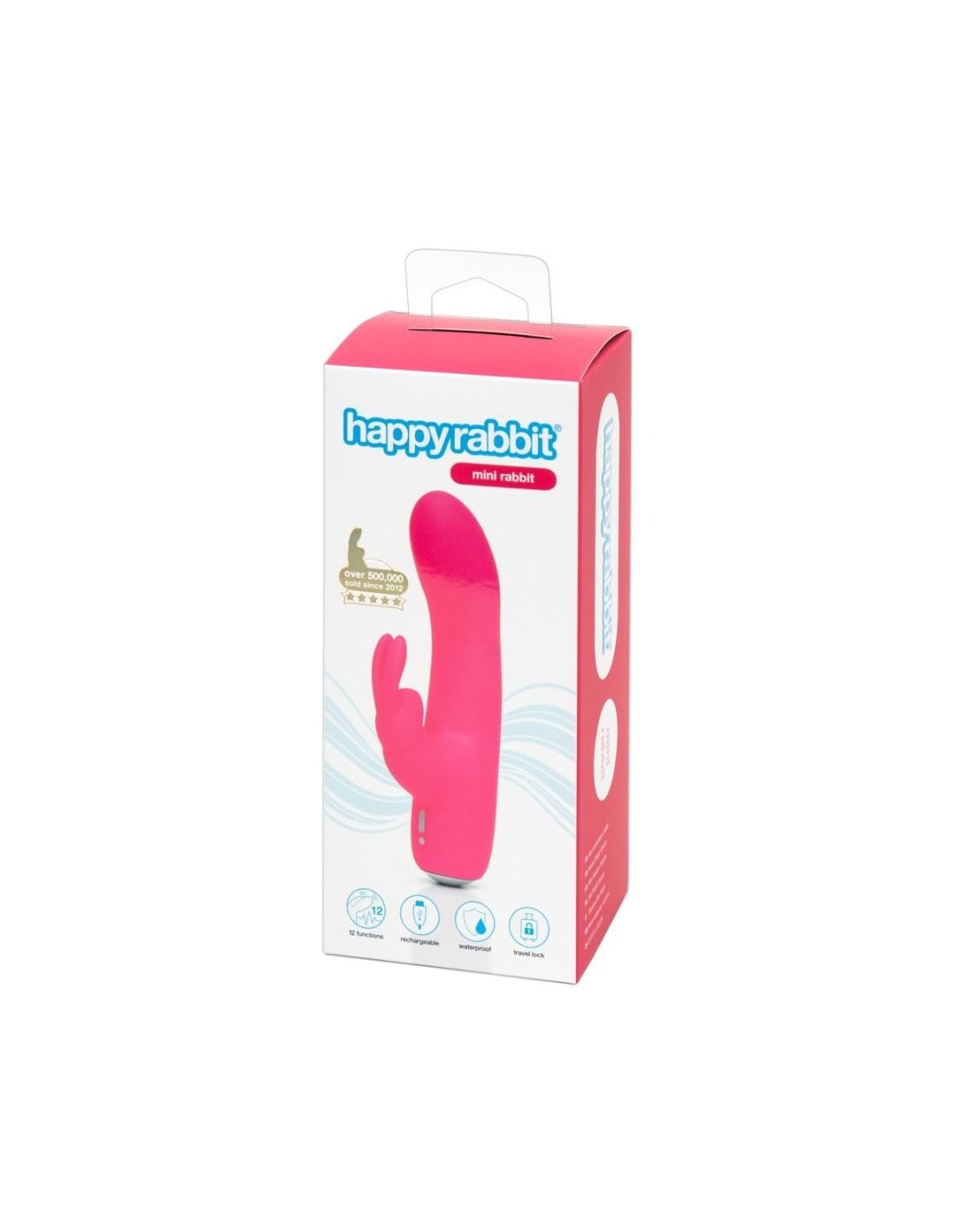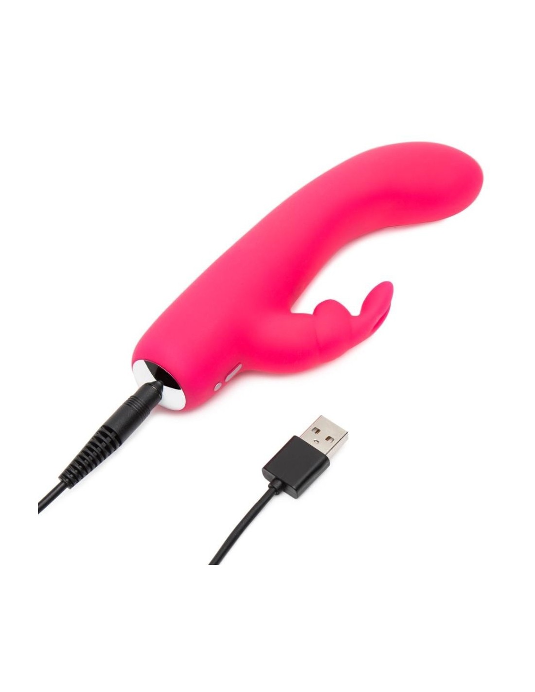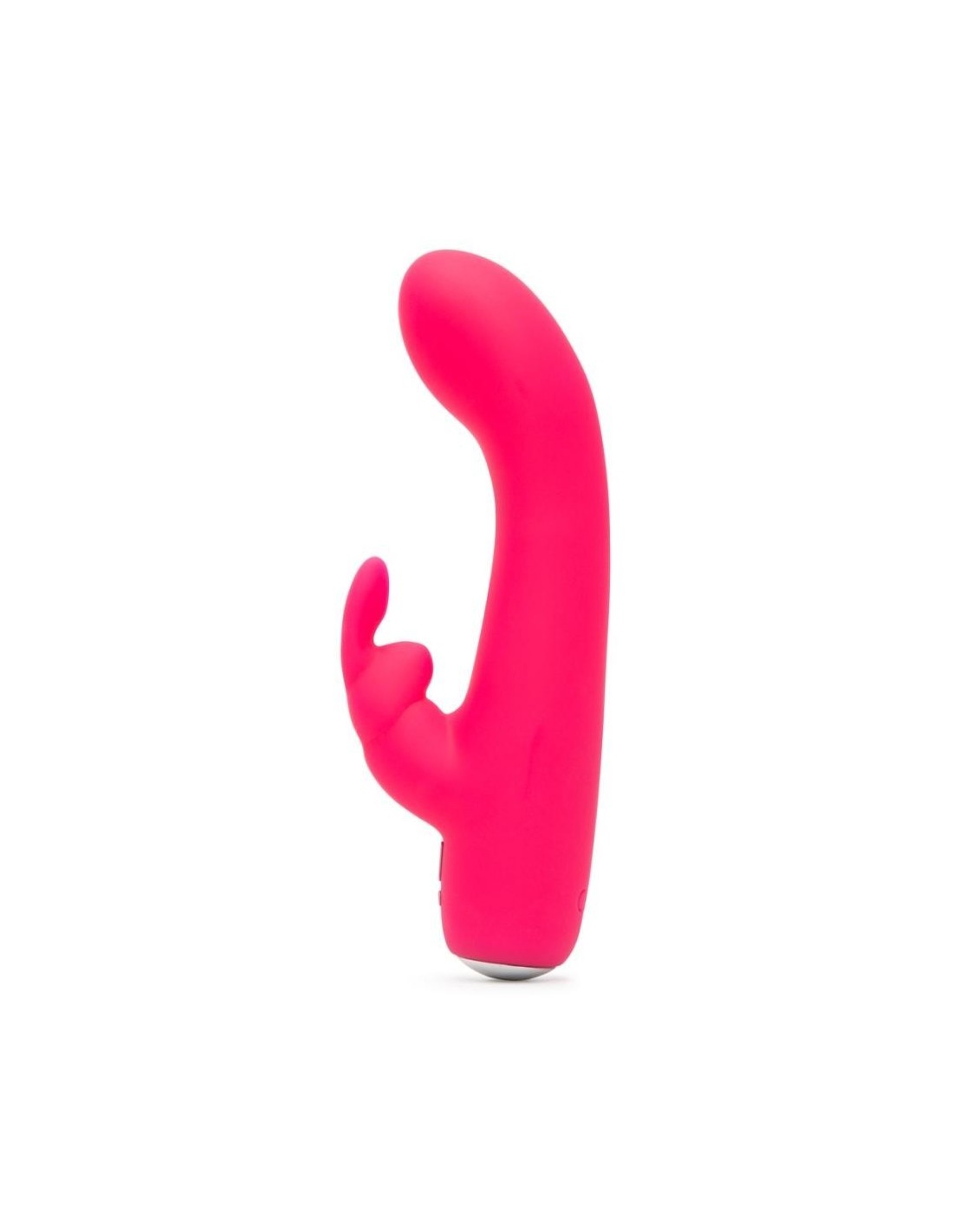 The petite rabbit vibrator has a slender shaft, a perfectly curved G-spot tip and a rabbit-shaped clitoral stimulator. 12 vibration modes and travel lock. Waterproof. Rechargeable with the included USB cable.