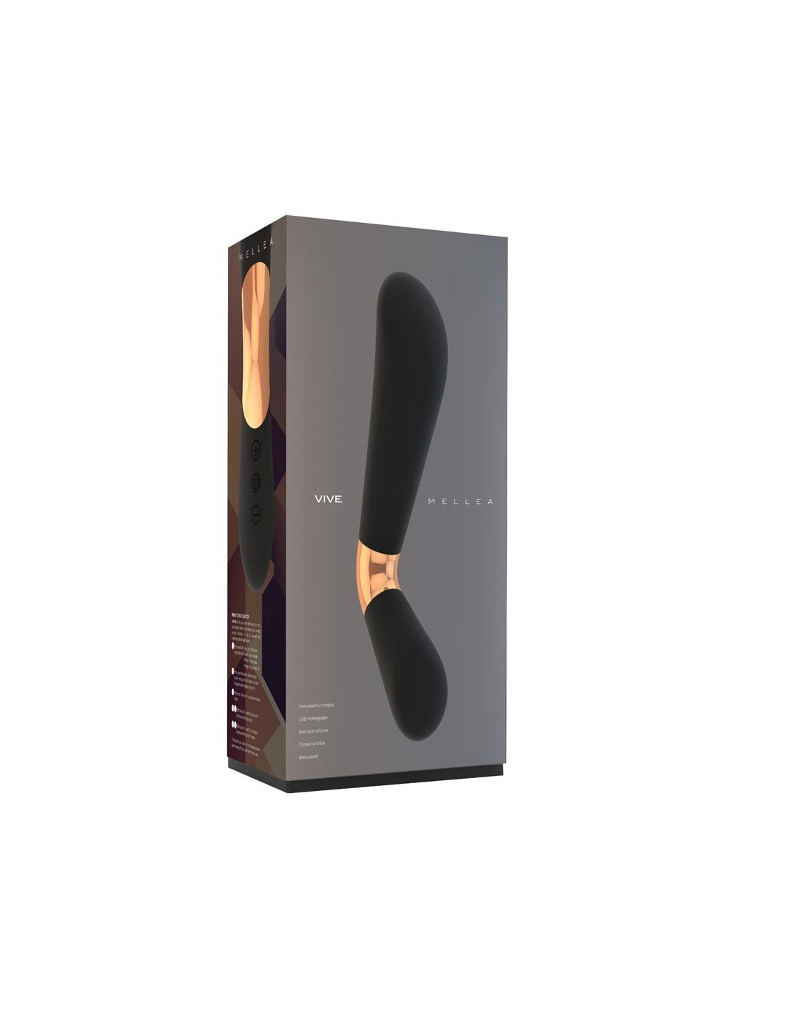 Vive è un nuovo fenomeno nel mondo dei prodotti di piacere di lusso per adulti. Il vibratore Mellea ha un design unico, il che lo rende un piacere per gli occhi, inoltre la sua forma unica ti trasporterà verso estatiche atmosfere. Le 10 diverse modalità di vibrazione provengono da una tecnologia ricaricabile nuova e unica, oltre che innovativa; usa due motori, il che lo rende incredibilmente potente. Grazie alla sua tecnologia resistente all'acqua, il Mellea è al 100% impermeabile e sarà un valido compagno nella vasca da bagno o in piscina! Il silicone di alta qualità è anche anti polvere e morbido al tatto, per questo con il Mellea vi sentirete assolutamente speciali! Specifications: - Rechargeable: Yes - Waterproof: Yes - Material: Anti-dust silicone - Soft Touch Cushion: Yes - Button Controlled: Yes - Total Length: 22,1 cm / 8,70 Inch - Total Width: 4,3 cm / 1,69 Inch - Total Depth: 5,5 cm / 2,16 Inch - Insertable Length: 14 cm / 5,51 Inch - Climax Function: Yes - Working Time: 60 min - Product Weight: 147 gr - Speed Modes: 10 - Charging time: 150 min - Rotations Per Minute: 7500 - Noise Level: 50db Dimensioni: 24,20 x 10,80 x 7,70 cm Peso: 448 gram