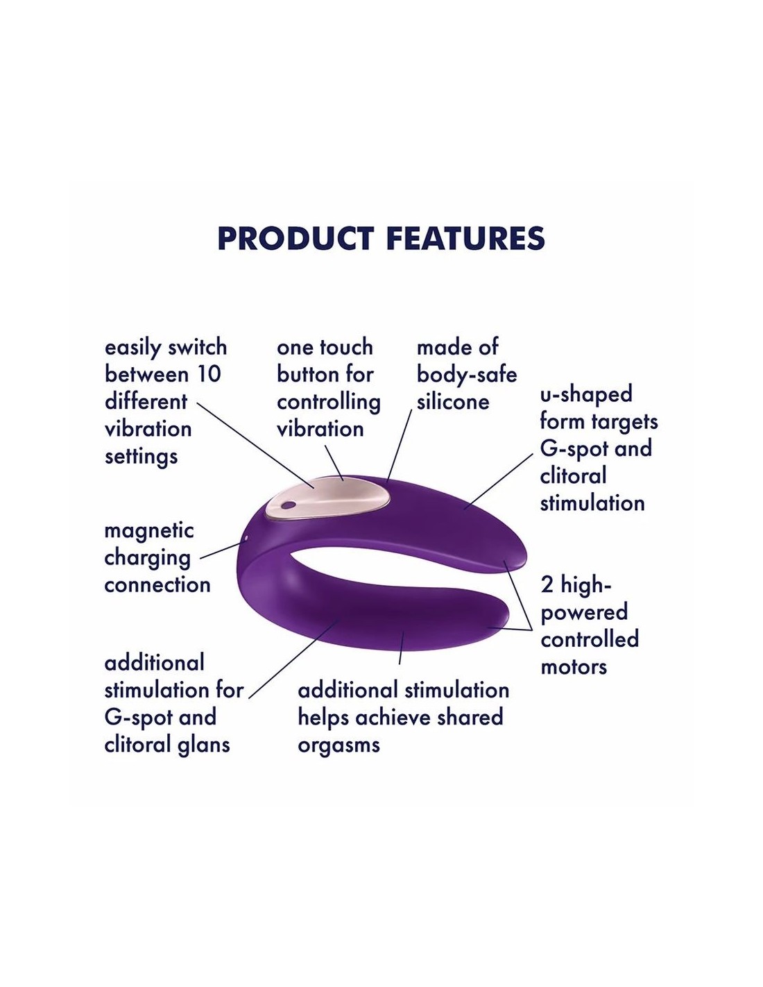 Stimolatore per la Coppia Il sextoy da utilizzare in coppia, con 2 potenti motori. Partner Plus è uno stimolatore progettato per il piacere di coppia. Una parte è inserita nella vagina e l'altra riposa sulla clitoride. L'uomo può penetrare la propria partner, sentire le vibrazioni e aumentare il suo piacere. Ha 2 motori potenti ma silenziosi, le vibrazioni provate vi porteranno direttamente all'orgasmo! Madame approfitterà della stimolazione del punto G e della clitoride procurata dallo stimolatore ma proverà piacere anche grazie alla penetrazione del proprio partner. Partner è ricaricabile, le pile non servono più (caricabatteria USB in dotazione)! Materiale: 100% silicone morbido e liscio. 10 modalità di vibrazione diverse. Lunghezza 10 cm. Diametro 2,5 cm. Lo stimolatore Partner Plus vi seguirà sotto la doccia, è waterproof. Per un piacere più intenso utilizzate un lubrificante a base d'acqua. Ricordatevi di pulire il vostro sextoy prima e dopo ogni uso.