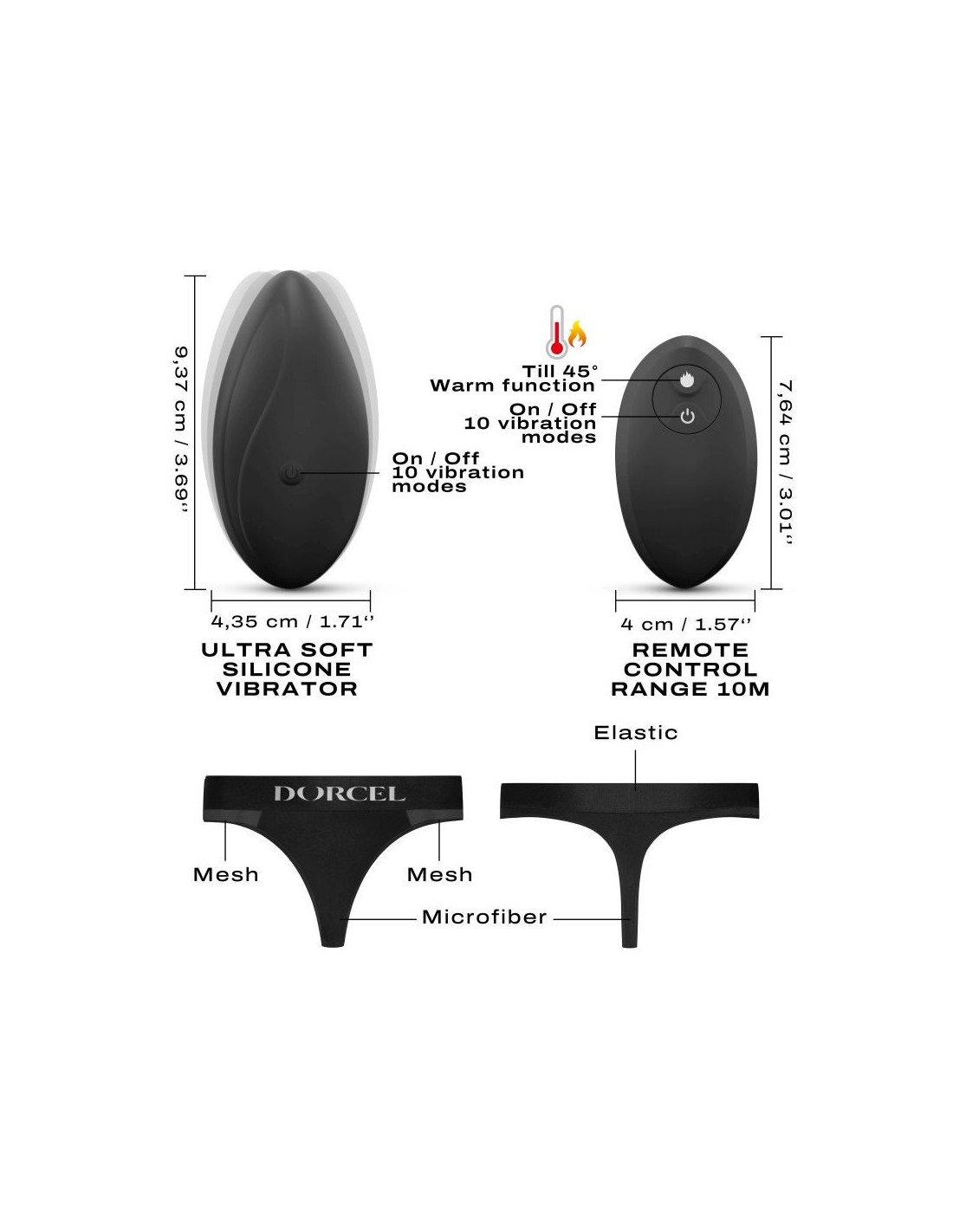 In privato o in pubblico lasciate correre il vostro piacere! Vuoi ravvivare la tua vita amorosa? Ecco il kit DISCREET VIBE, che include 1 mutandina e 1 vibratore telecomandato, discreto ma potente che farà avverare le tue fantasie. Questo minuscolo vibratore dalla forma curva è pensato per essere infilato nella tasca interna della mutandina, che è perfettamente posizionata per abbracciare il tuo clitoride. Dotato di un motore silenzioso ma potente, questo vibratore ti porta piacere con discrezione. Ovviamente non dimenticare di attivare la funzione di riscaldamento per una sensazione realistica. Con il tuo partner o da sola, gioca con il telecomando e le 10 impostazioni di vibrazione per portare la tua eccitazione al culmine. Sai che è un must da non perdere! Emozioni segrete dove e quando vuoi! VANTAGGI : Silenzioso ma potente 10 modalità di vibrazione Funzione calda Design curvo ergonomico Slip indossabile La tasca interna si adatta perfettamente al vibratore Cintura elastica regolabile INFORMAZIONI TECNICHE : Dimensione : 9,37 x 4,35 x 2,23 cm / 3,69 x 1,71 x 0,88 pollici Silicone, ABS, batteria agli ioni di litio 43% microfibra 12% rete e 45% elastico Tempo di ricarica: 2 ore Durata: 1 ora Portata remota: 6-12 m Livello di rumore: 50 db Ricaricabile per vibratore e telecomando (1 cavo incluso) Impermeabile